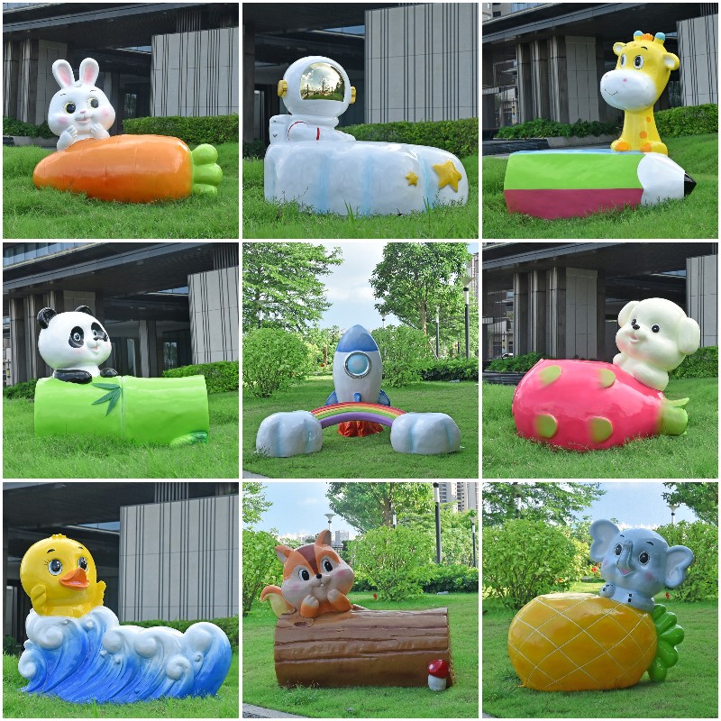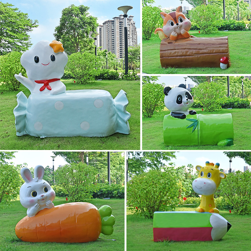户外卡通动物座椅雕塑玻璃纤维网红商场幼儿园林风景区公园椅装饰