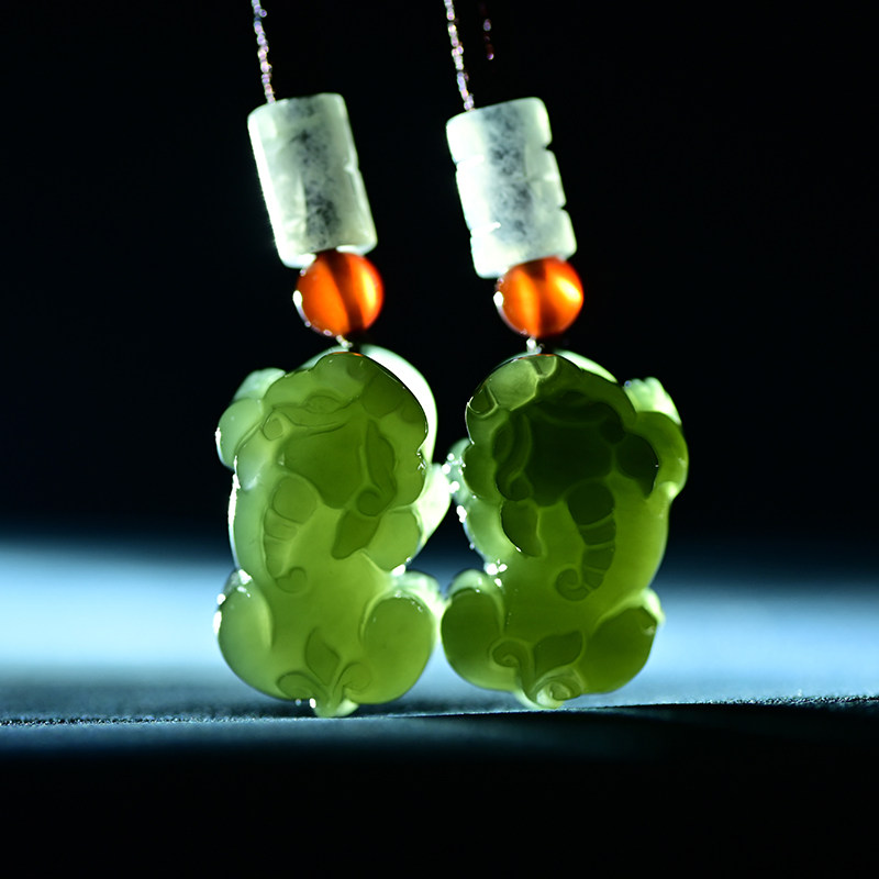 玉石貔貅挂件天然新疆和田玉皮丘男士吊坠皮休玉坠情侣项链一对