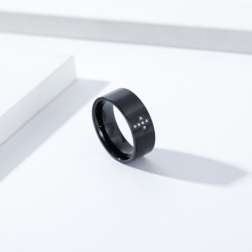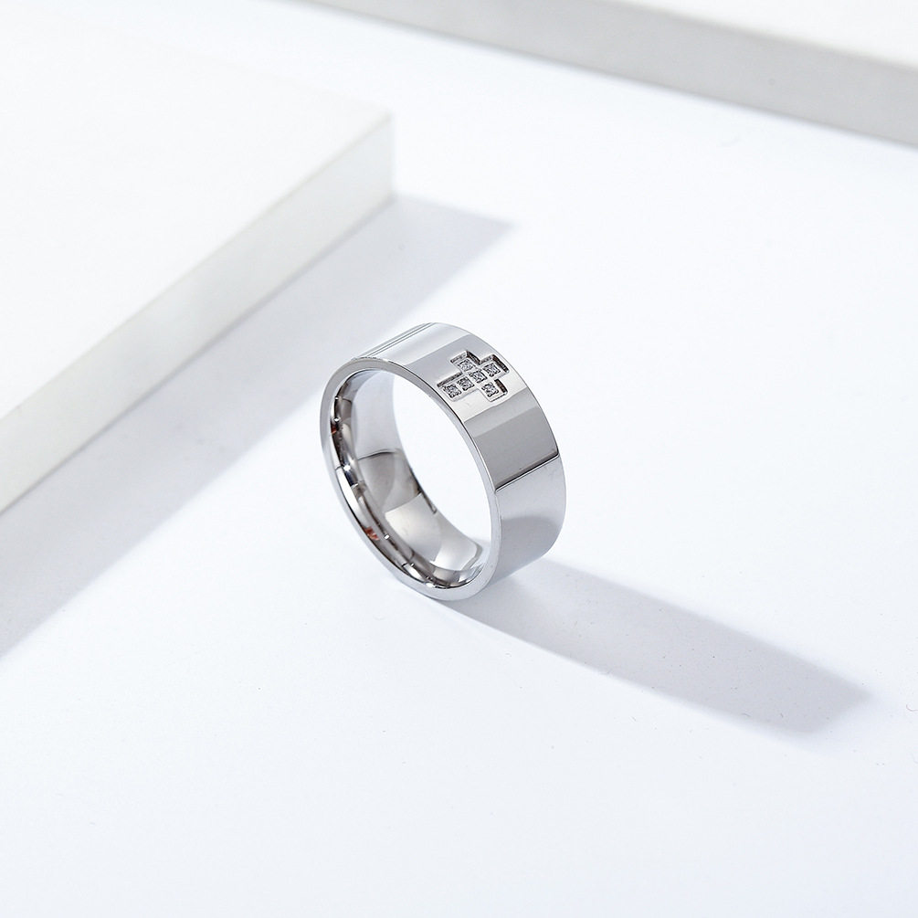 跨境电商钛钢饰品镶钻十字架戒指男士简约个性指环潮人穿搭手饰品