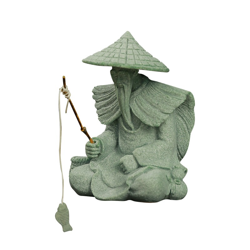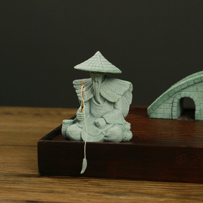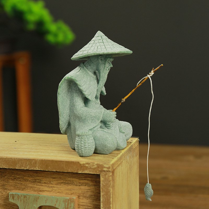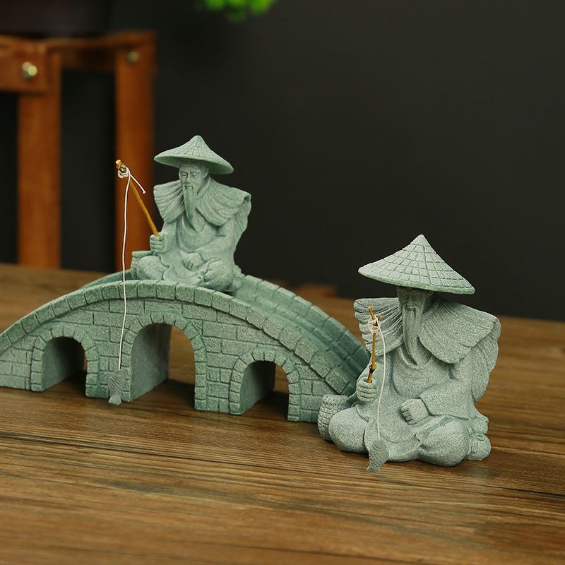 创意迷你姜太公垂钓茶宠中式砂石摆设摆件鱼缸造景茶道青装饰趣味