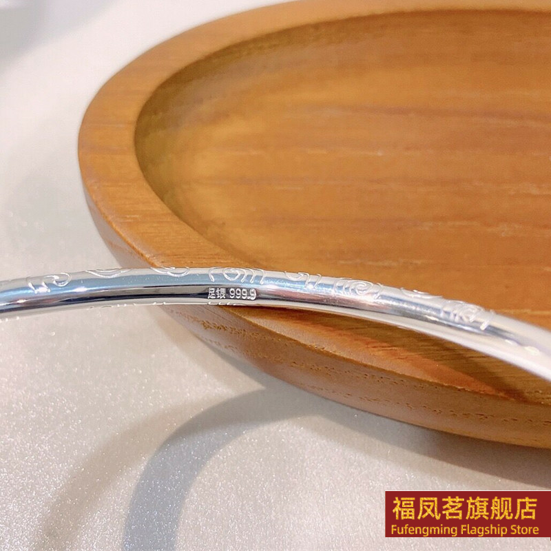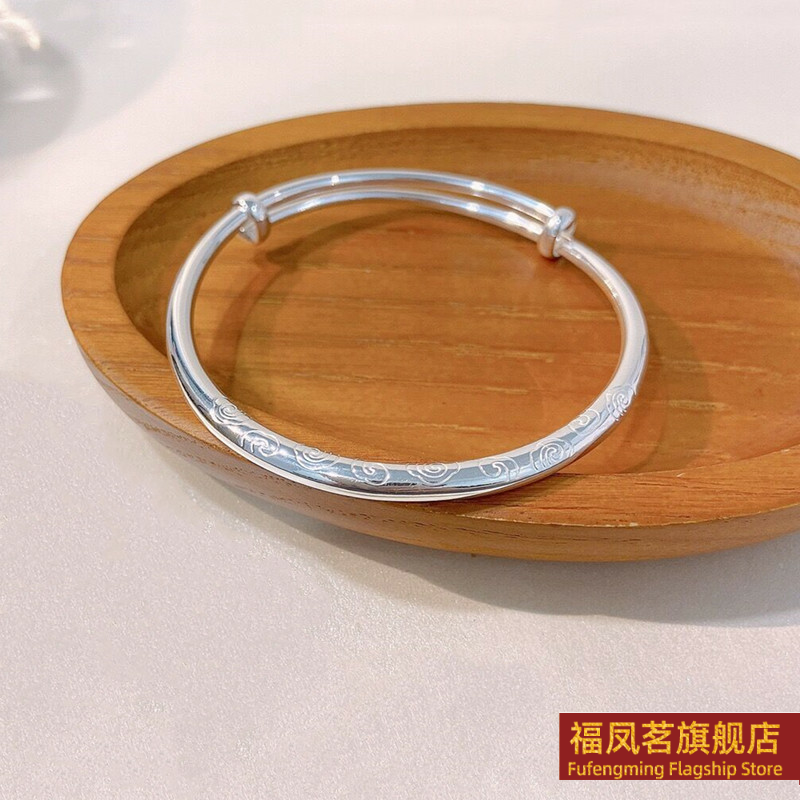 正生新款祥云推拉实心手镯足银9999女小众新款礼物银饰品网红银镯