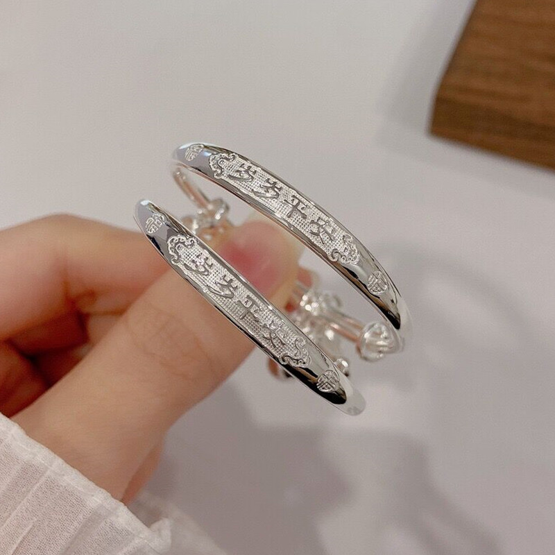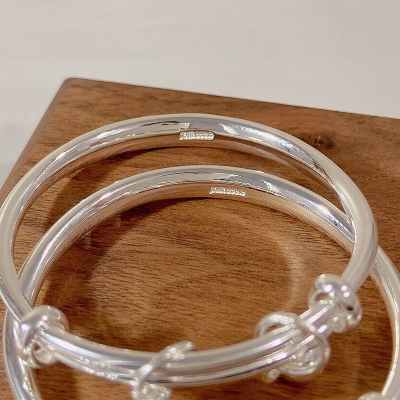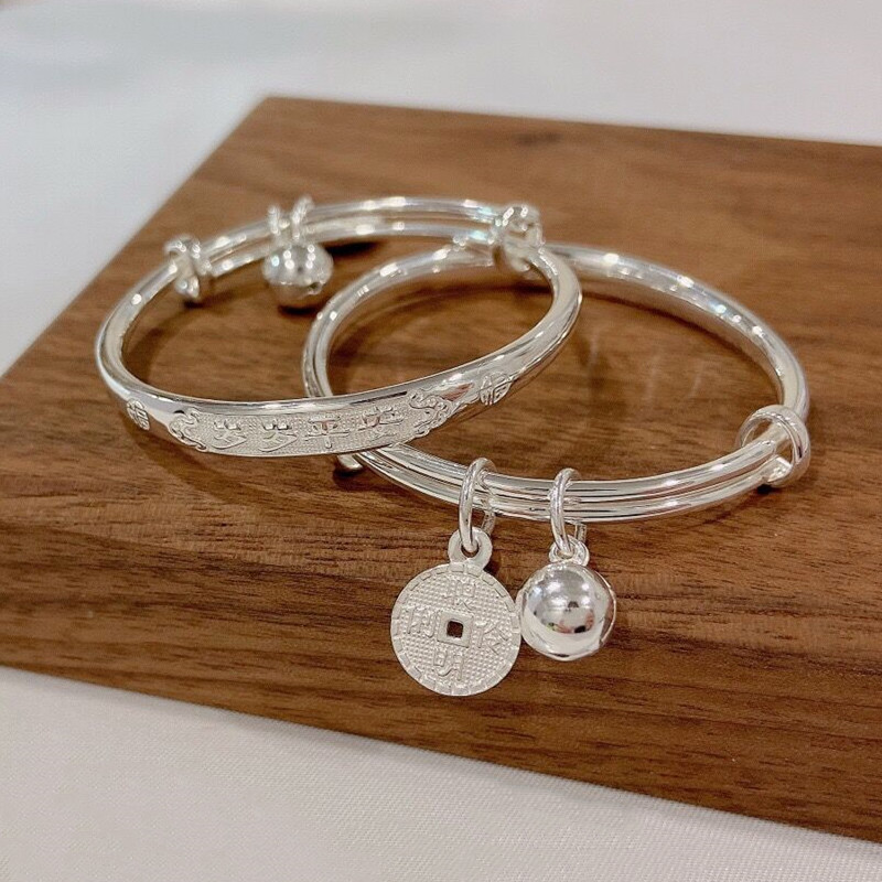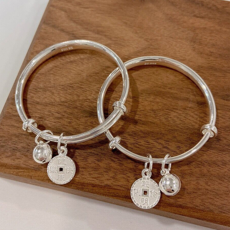 福凤茗宝宝新生婴儿手镯平安铜钱铃铛实心男女儿满月周岁生日礼物