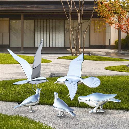 不锈钢镜面鸽子雕塑抽象动物海鸥小鸟摆件户外园林轻奢美陈装饰品