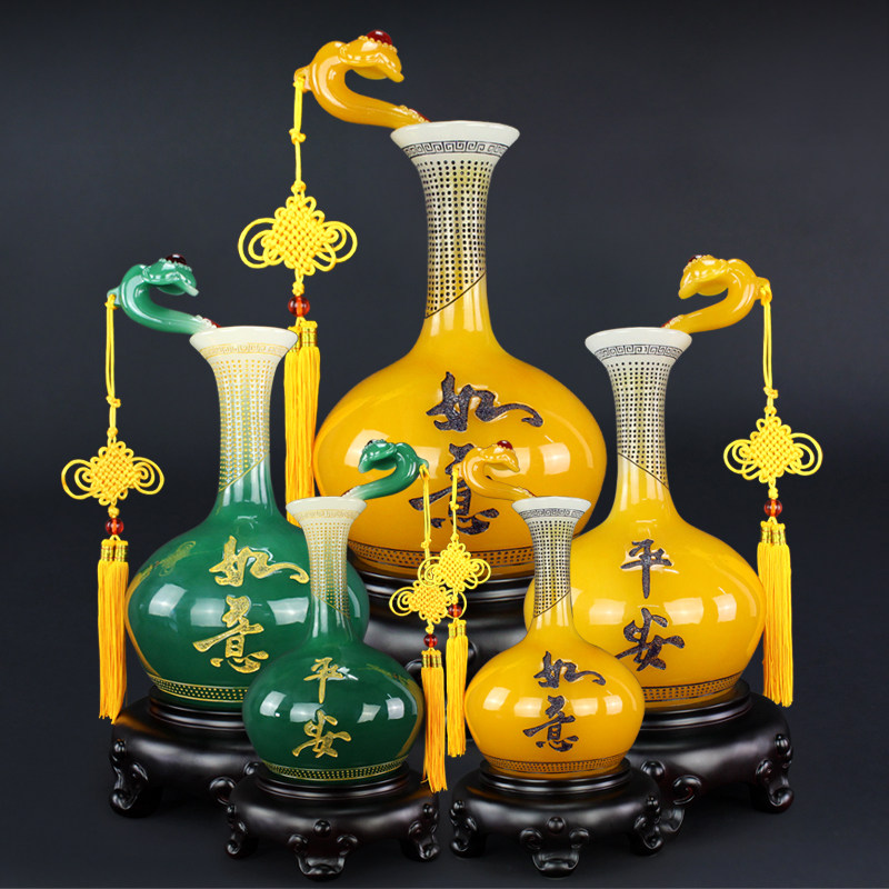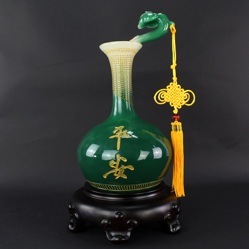 树脂工艺品平安玉如意花瓶摆件家居装饰客厅酒柜博古架小摆设中式