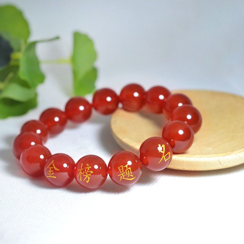 红色天然玛瑙金榜题名手链女情侣闺蜜水晶本命蛇年饰品男生日礼物