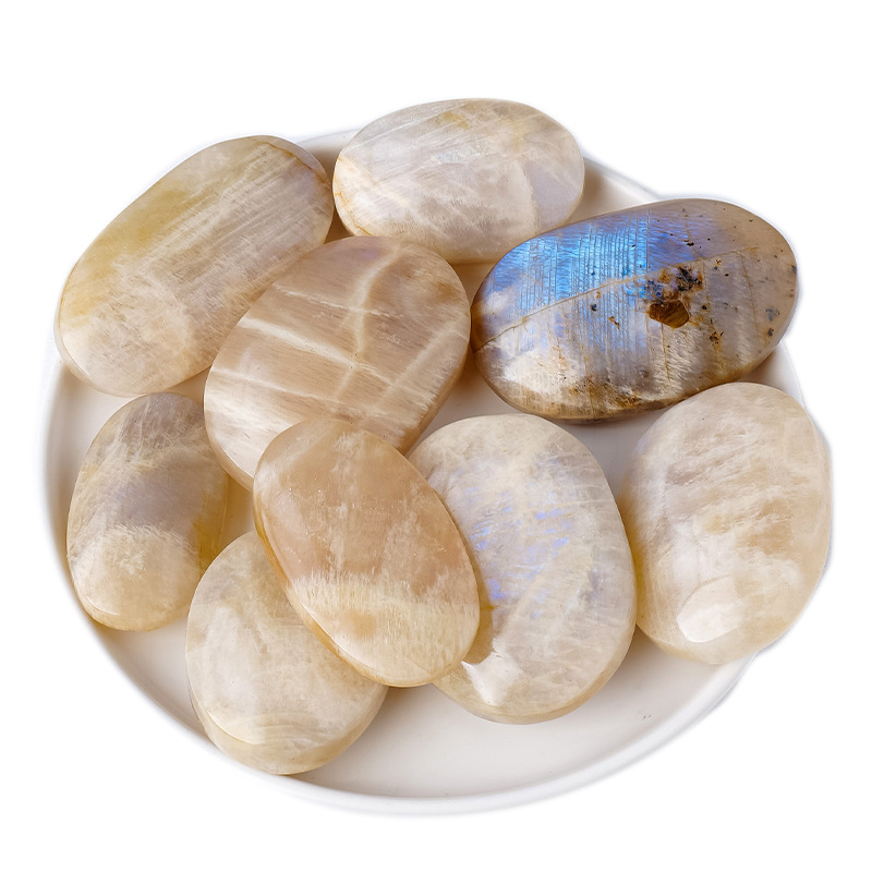 天然水晶月光石把玩原石打磨半宝石热敷按摩石瑜伽石鱼缸装饰
