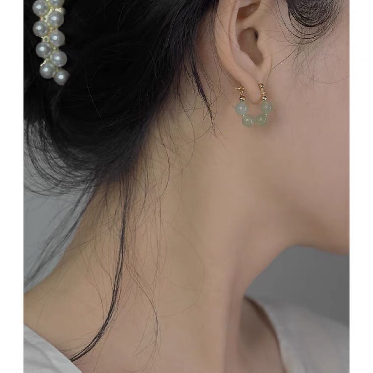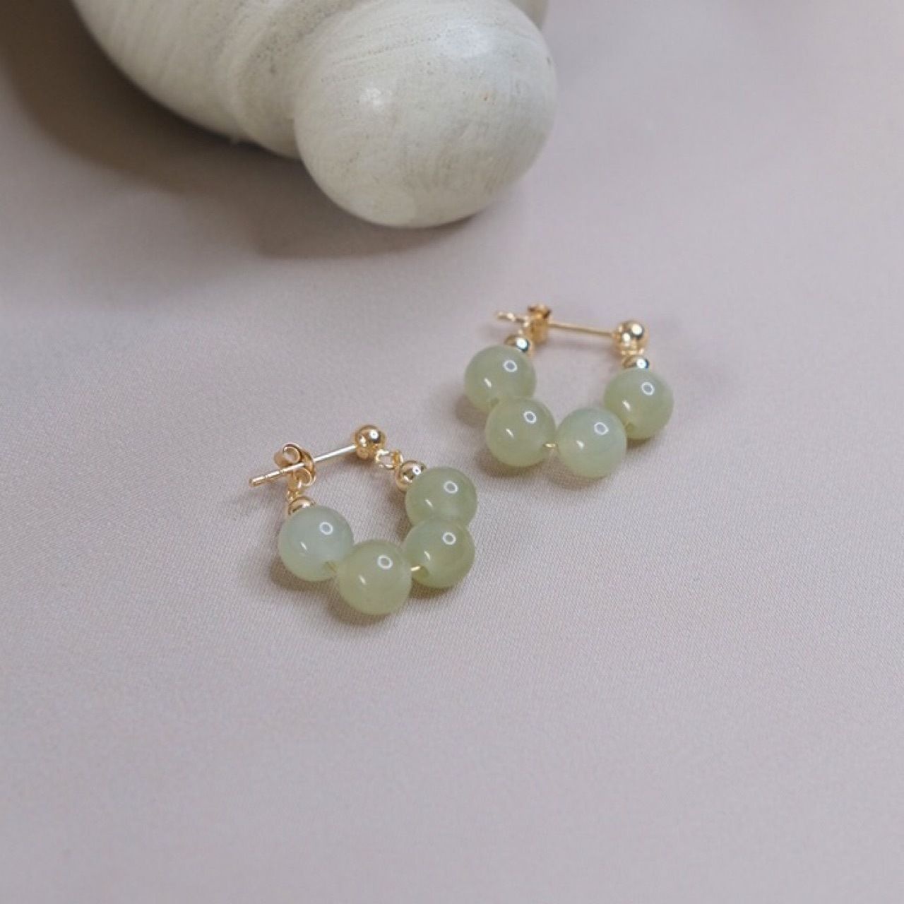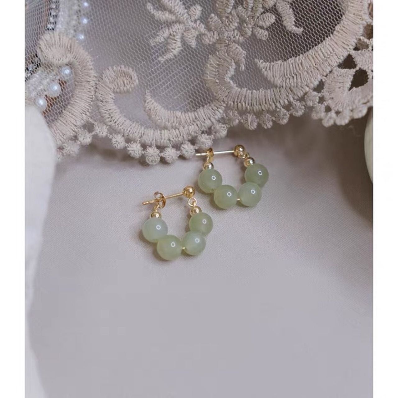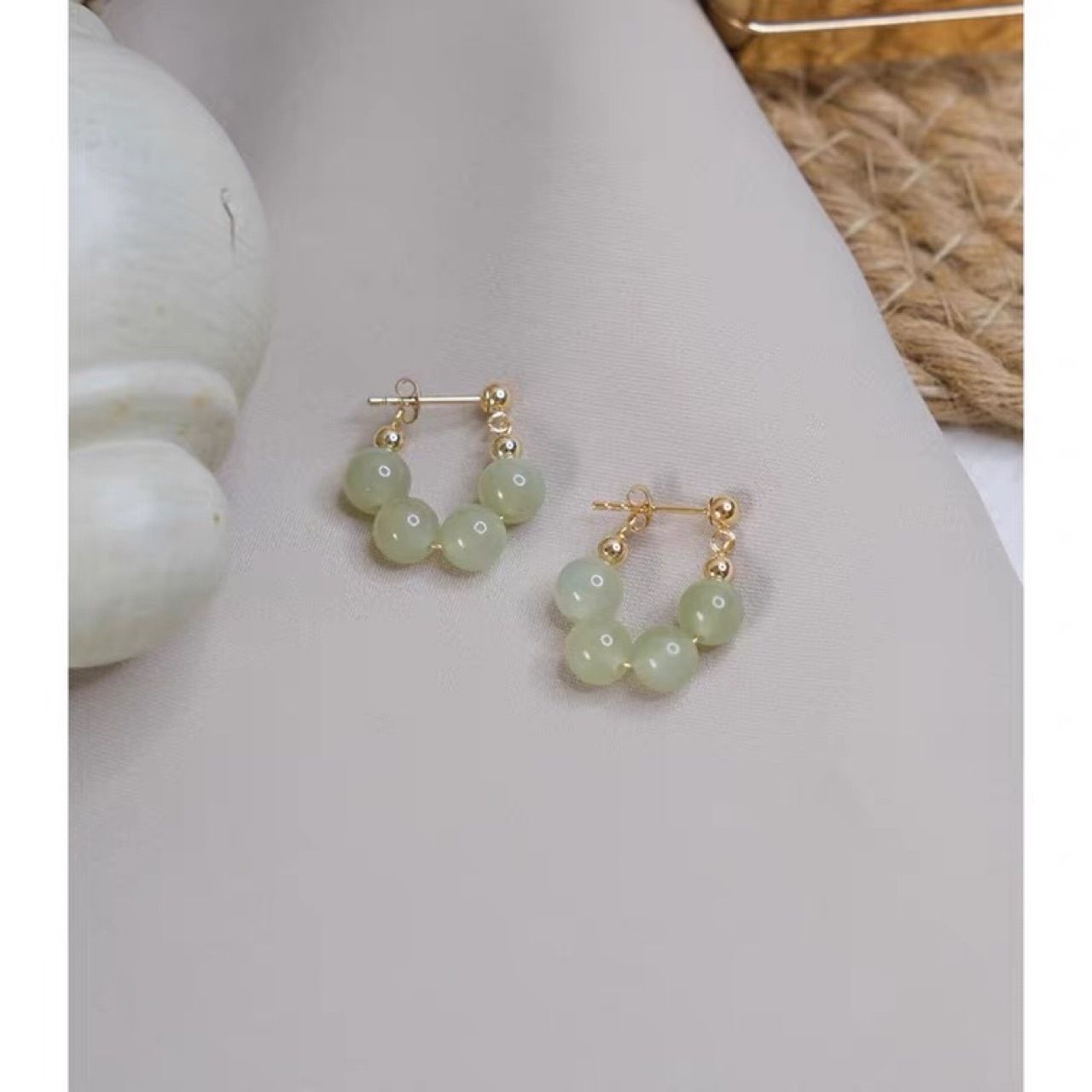 手作四颗和田玉u形耳钉清新日韩耳环耳饰优雅淑女潮