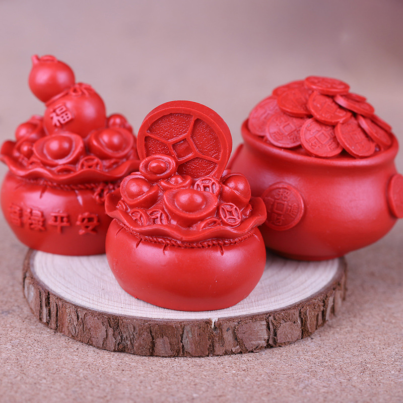 朱砂红砂摆件聚宝盆铜钱葫芦招财聚财九龙鼎摆件招财摆台家居摆件