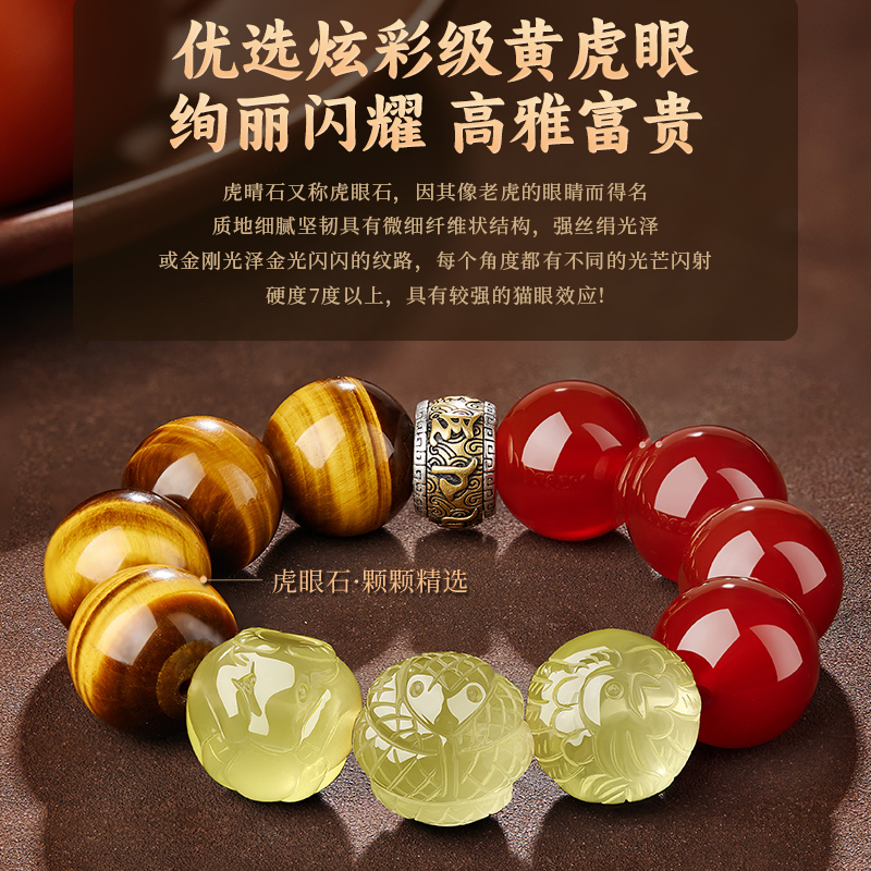 红玛瑙手串男黄虎眼石黄水晶三合生肖五行补缺喜火土文玩佛珠手链