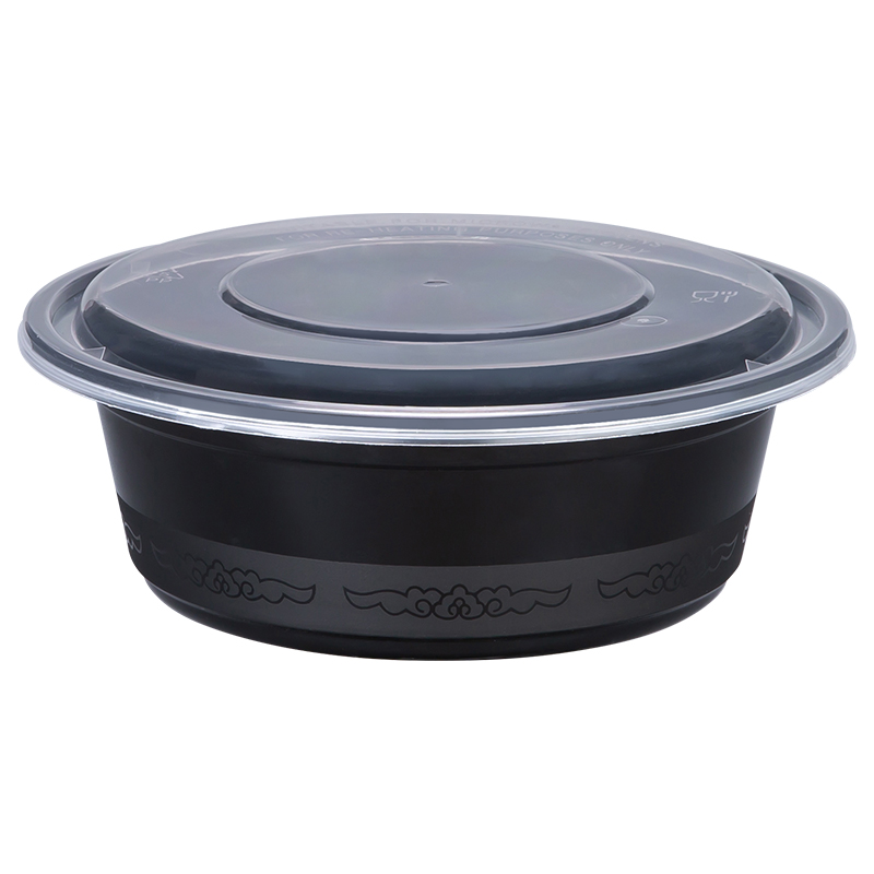 美式外卖打包盒900ml圆形一次性餐盒商用加厚黑色饭盒带盖塑料碗