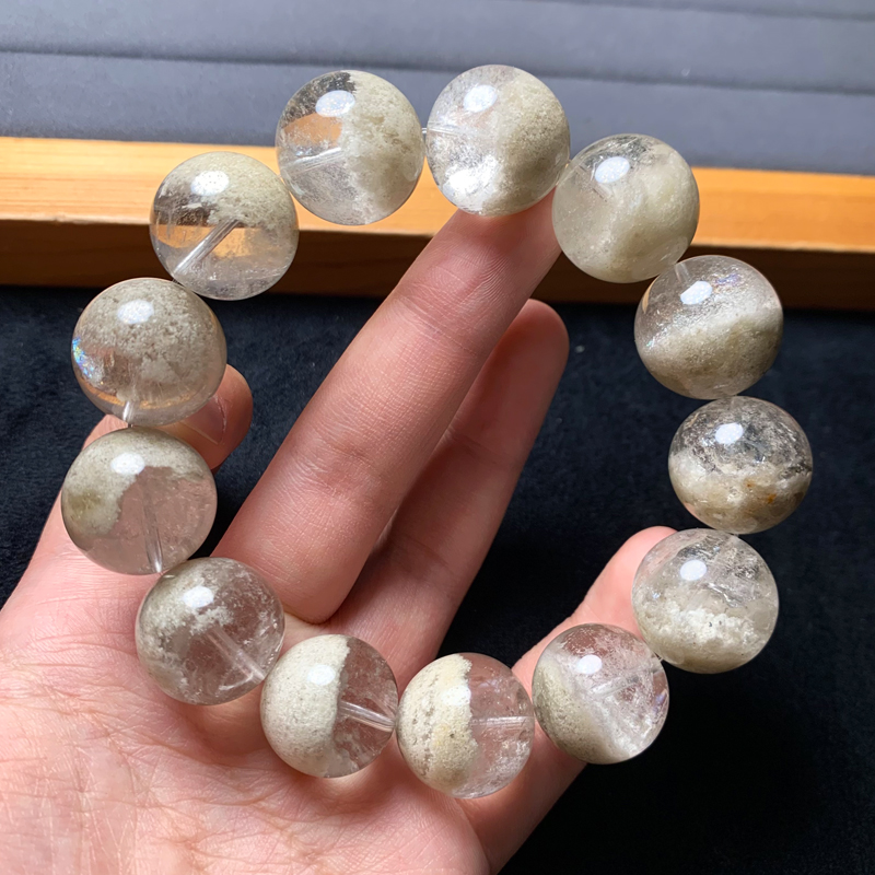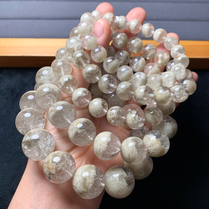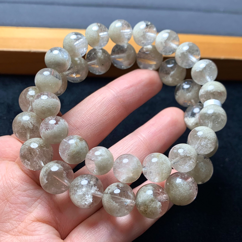 天然巴西抹茶白幽灵单圈手链水晶千层山水晶手串礼物饰品一物一图