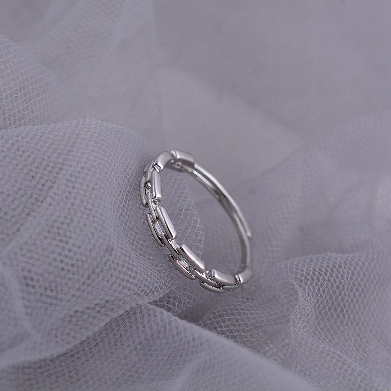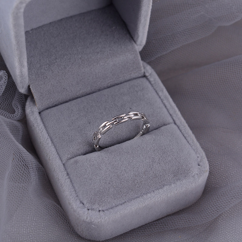 925纯银素圈链条戒指女时尚小众设计ins开口潮高级轻奢可调节百搭