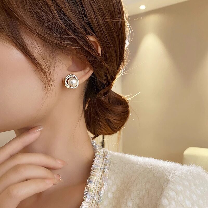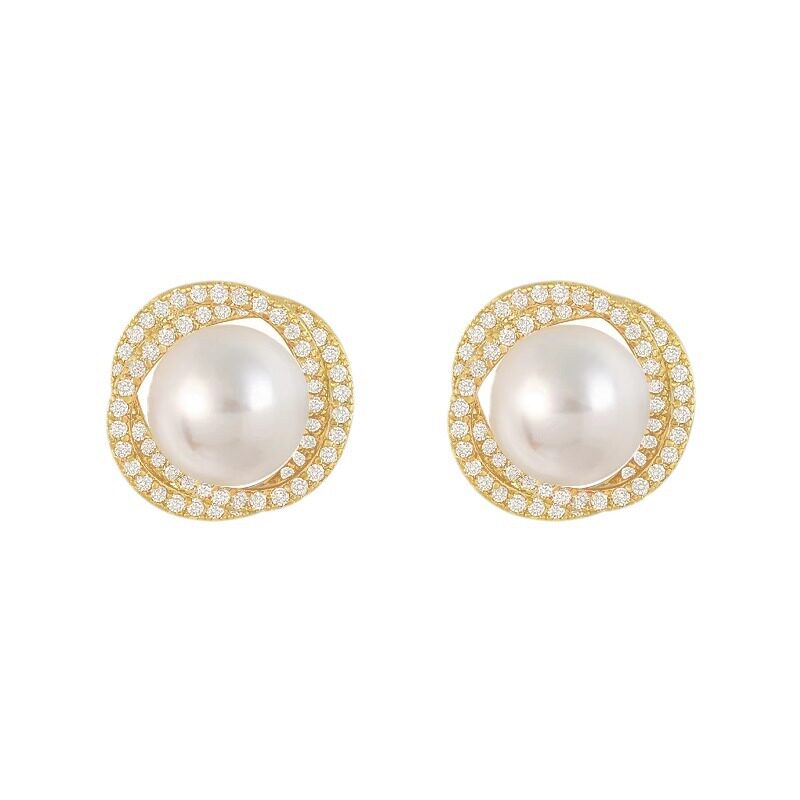 Rusizi螺旋珍珠耳钉双c法式海水珍珠18k金2024新款轻奢高级感耳环