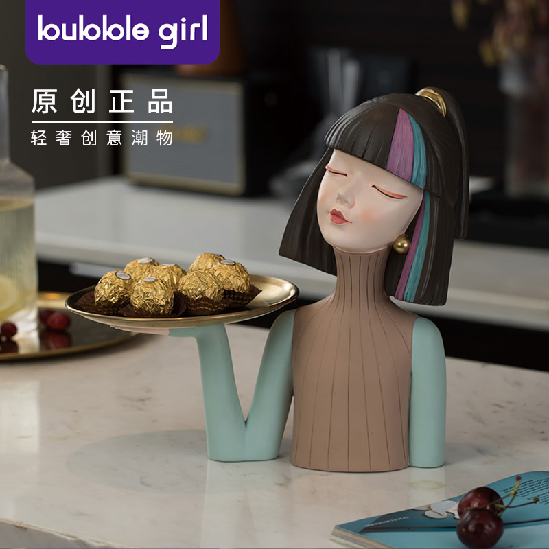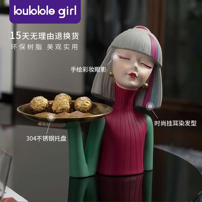 美妆女孩托盘g钥匙收纳摆件桌面客厅茶几装饰入户玄关创意家居饰