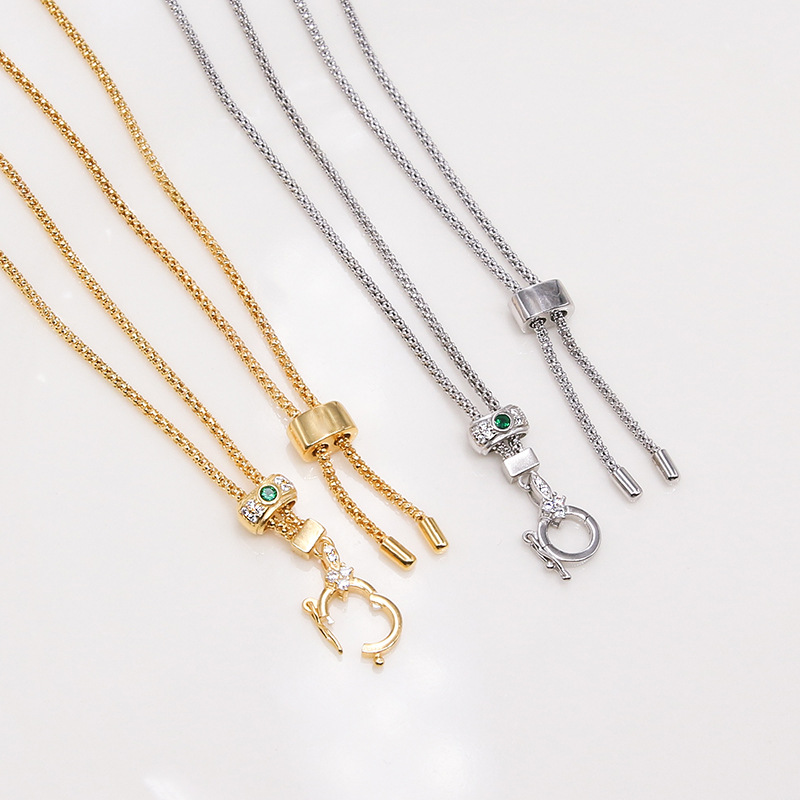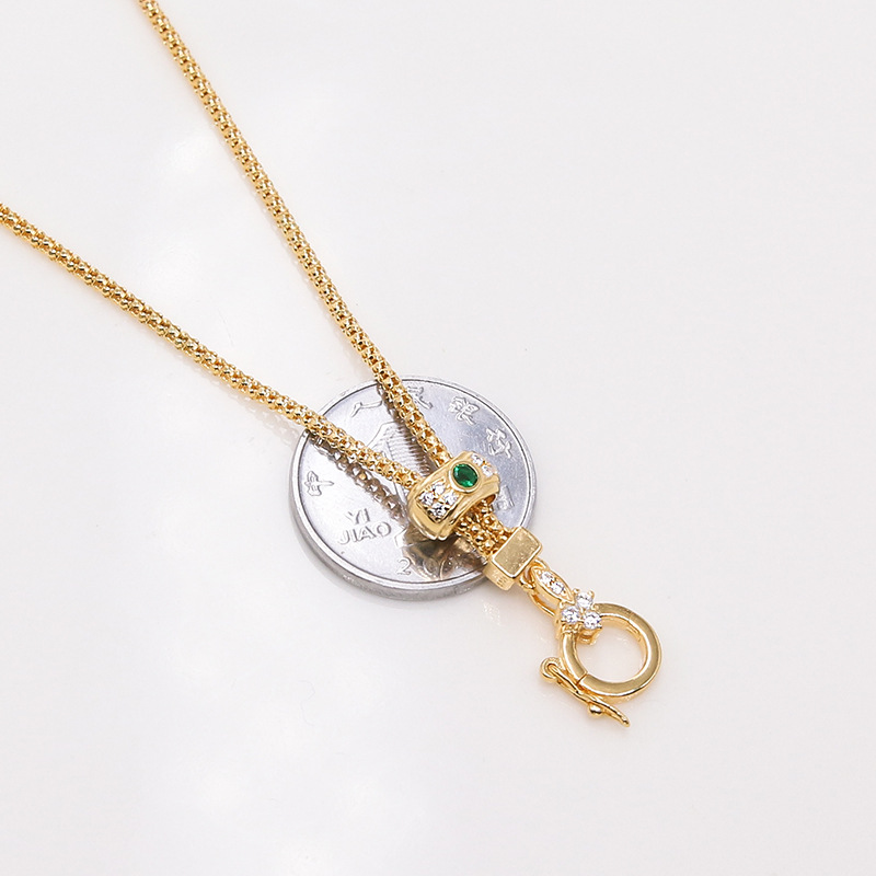 S925纯银元链车花圆形项链DIY可调节长短绿色锆石60厘米轻奢链