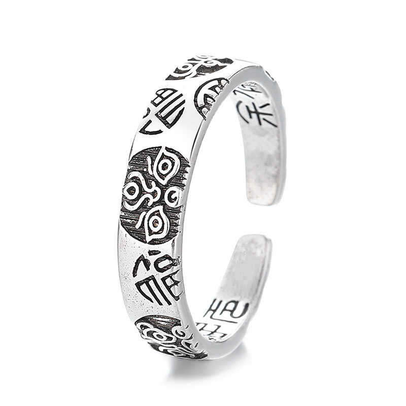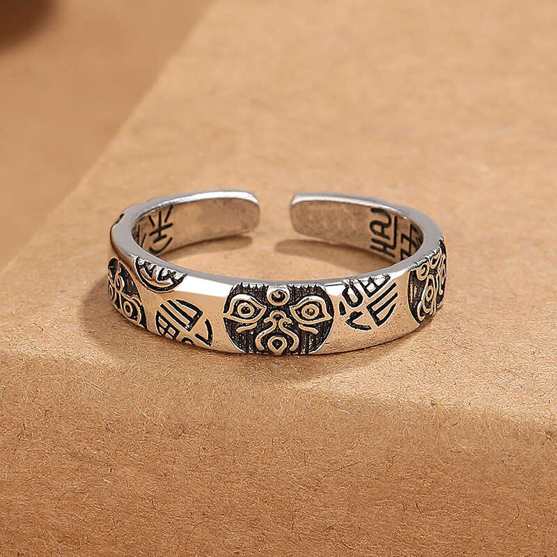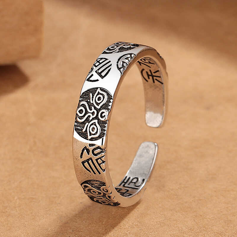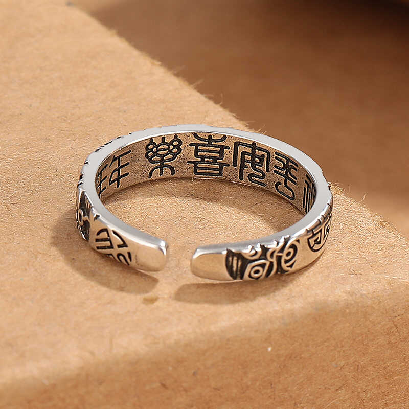 吉言戒指手工不刻字开运平安开口国风男女小众时尚指环
