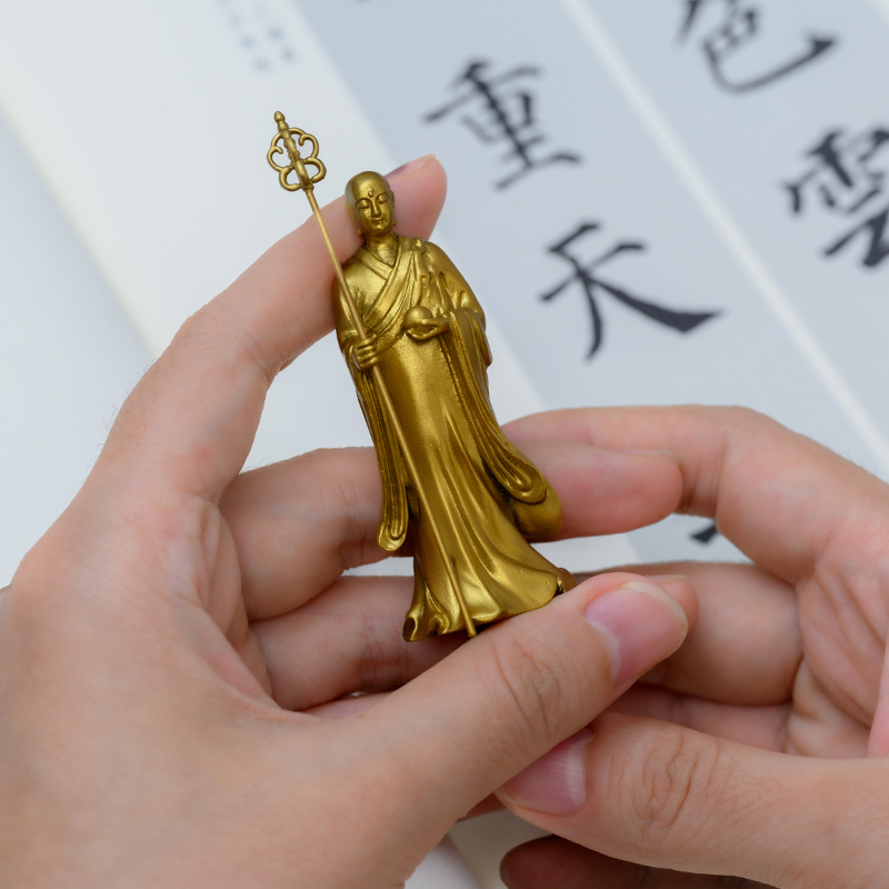 金色九华山地藏王菩萨像小摆件地藏菩萨佛像随身佛装饰禅意装饰品