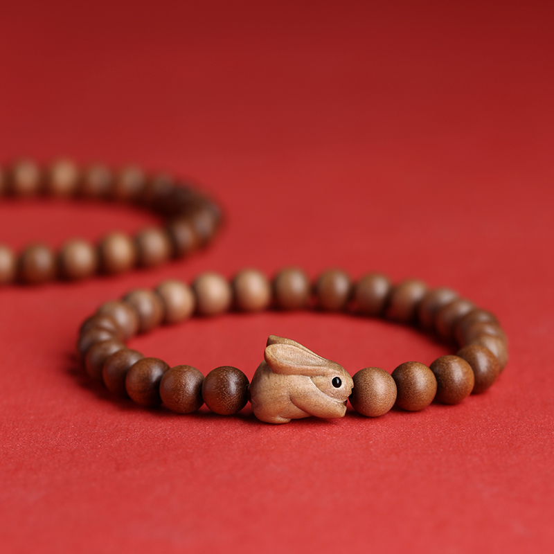 原创设计印度老山檀香木兔子手串复古风气质复古檀木兔年木质手链