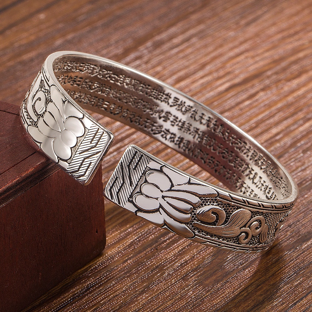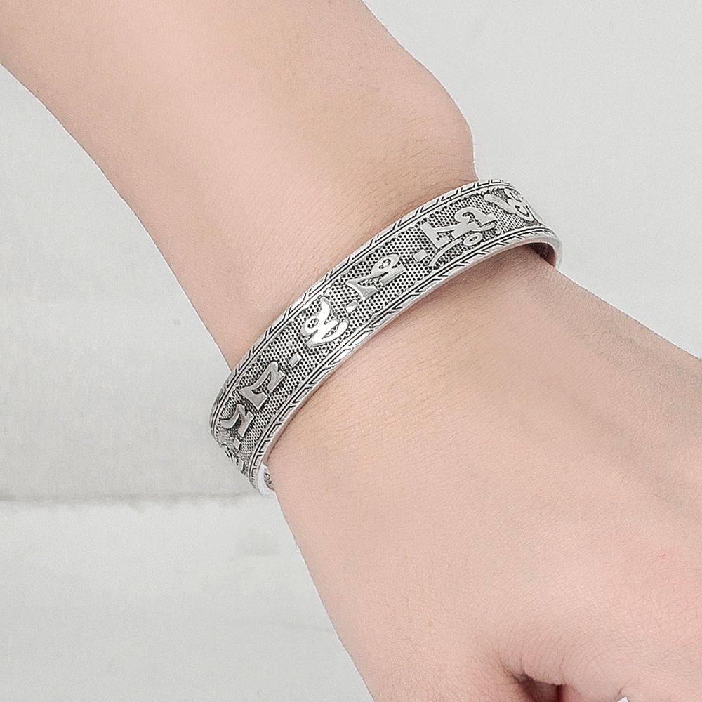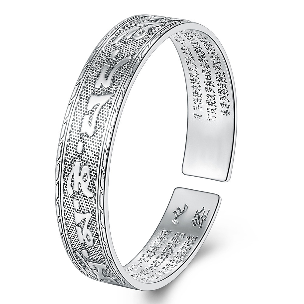跨境外贸流行简约轻奢感银饰品雕刻梵文箴言手镯男士佛文心经镀银