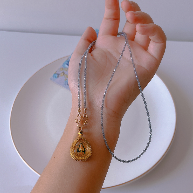 【赛里木湖的约定~】超美冰蓝水晶佛牌链原创设计佛牌挂链毛衣链