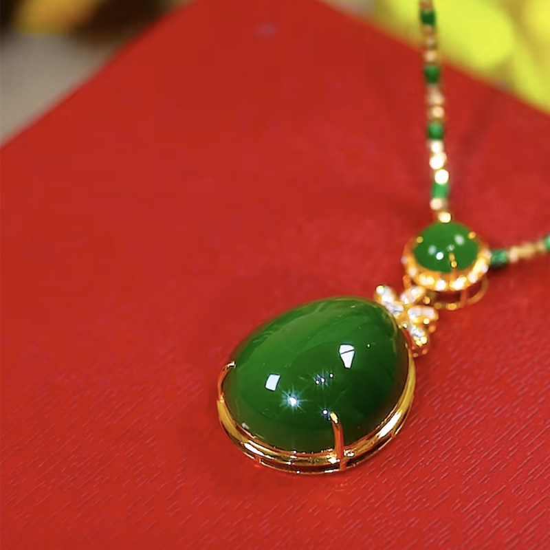 新款菠菜绿玛瑙玉石吊坠玉石时尚精致配饰挂件百搭项链女 毛衣链
