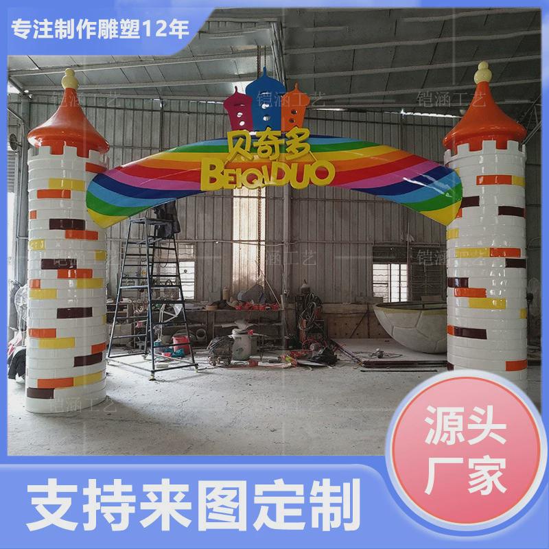 玻璃钢雕城堡门头游乐场背景墙装饰罗马柱儿童乐园模型卡通摆件