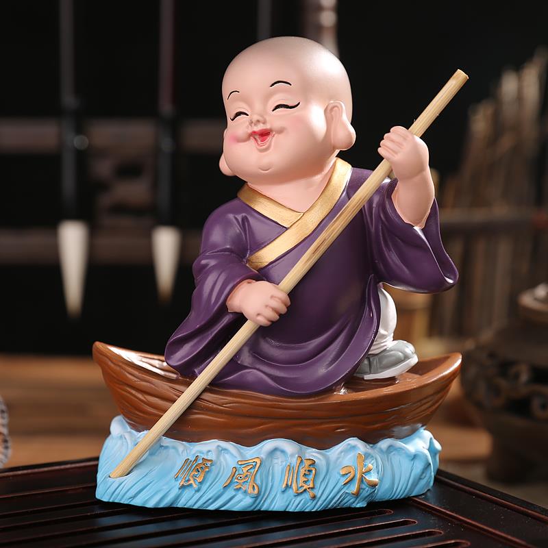 妙工坊 创意可爱小和尚摆件树脂公仔办公室书桌家居车内车载饰品