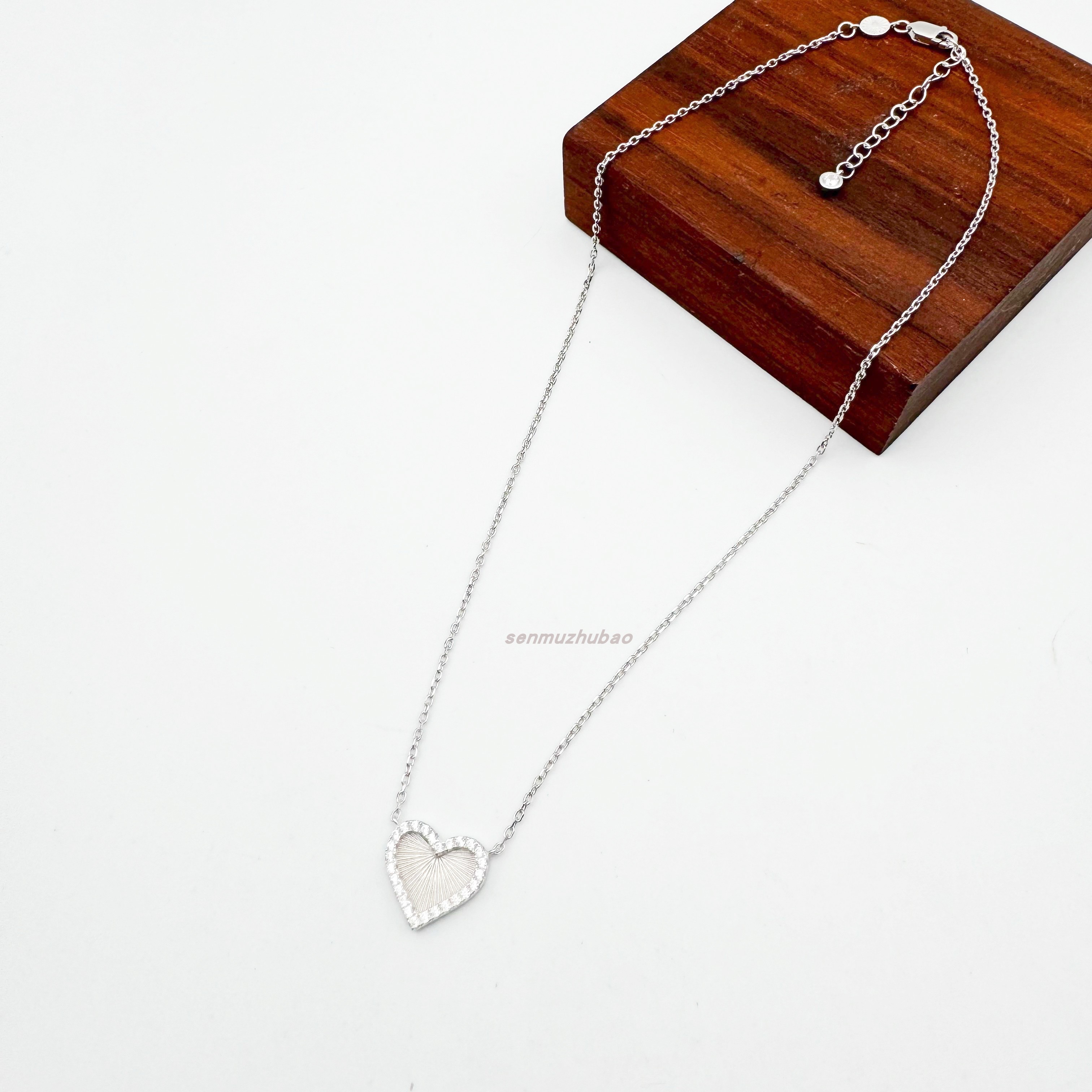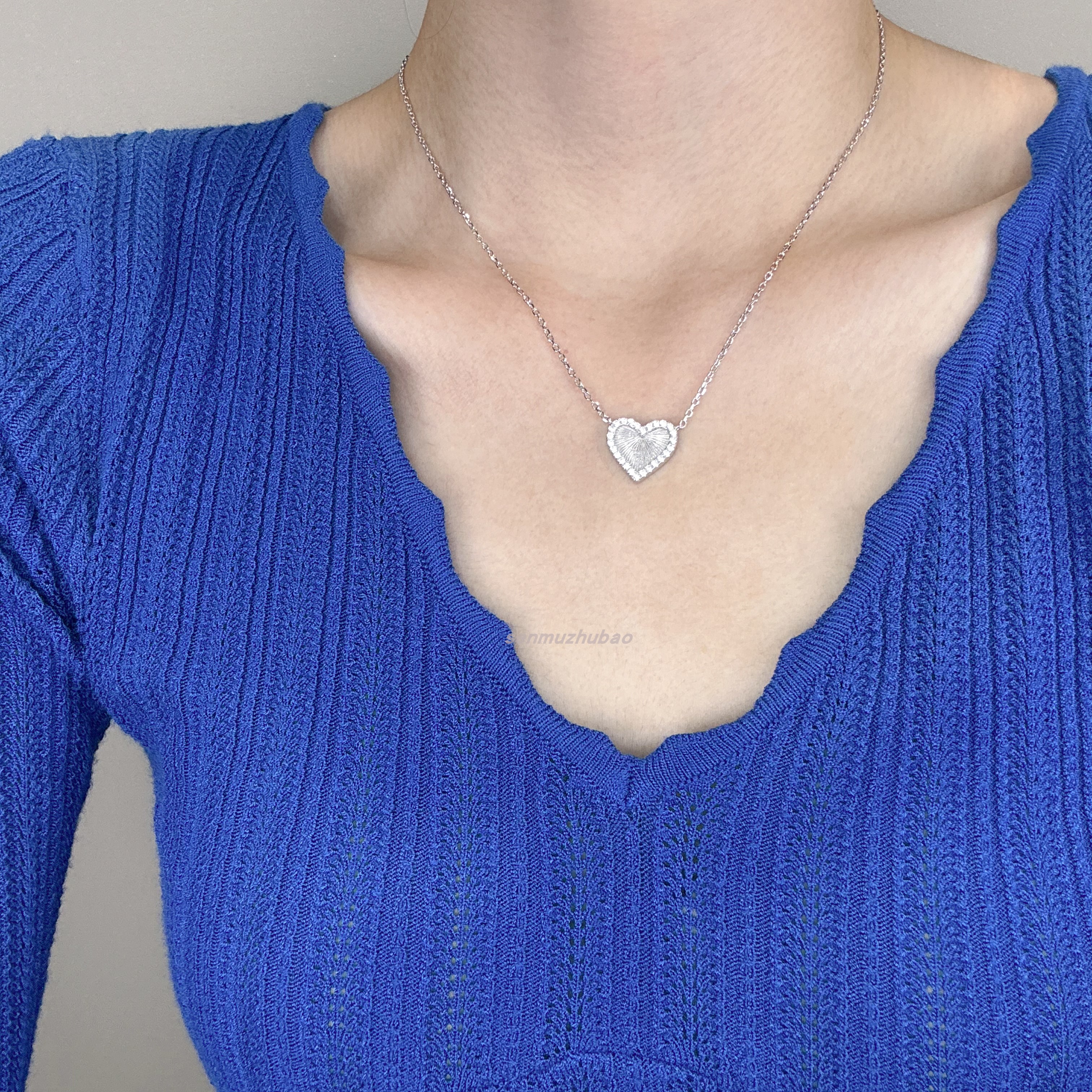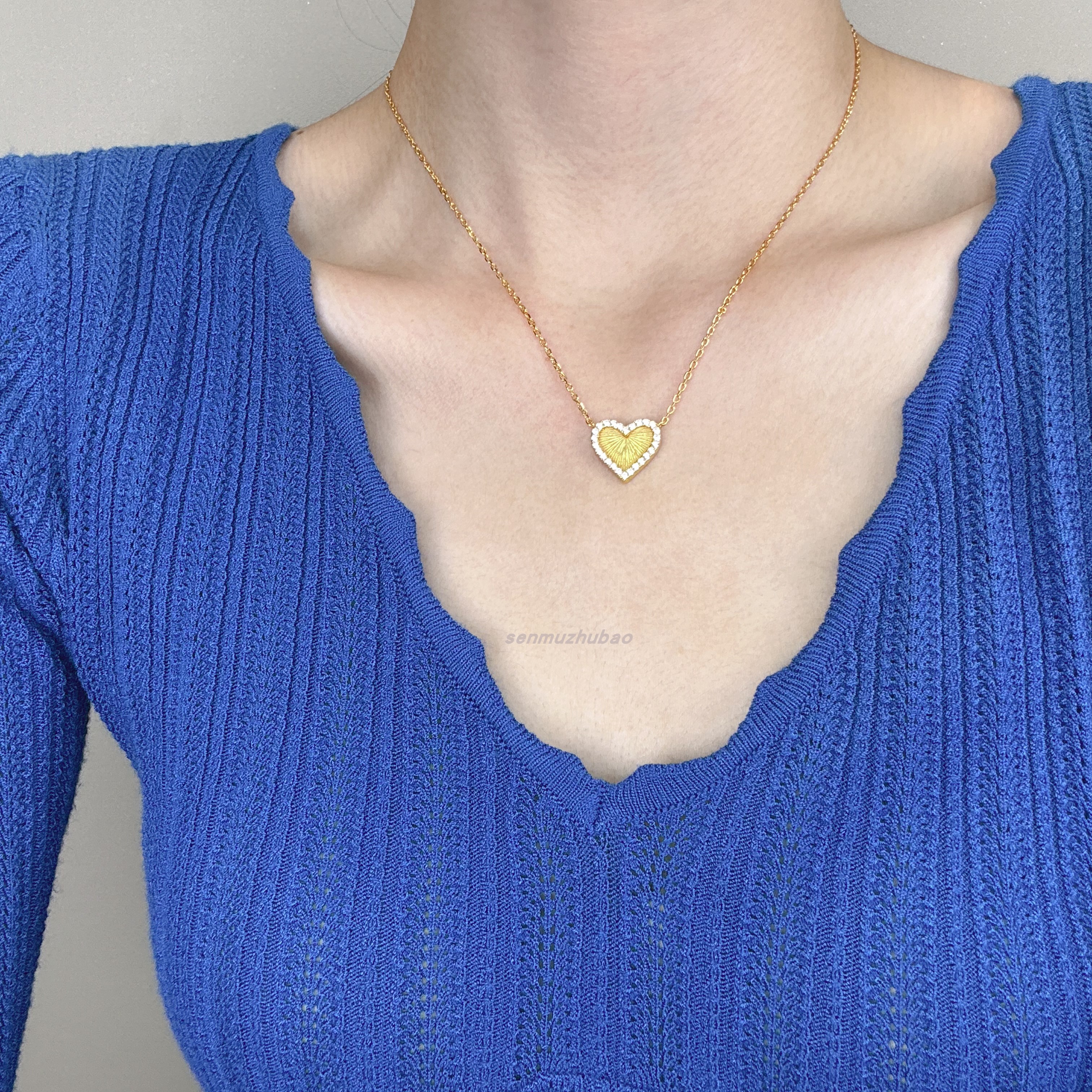 法式复古925纯银镀金爱心镶钻吊坠项链设计感极简轻奢高级感时尚
