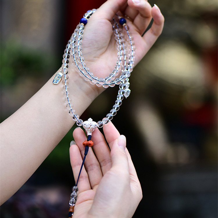 水晶念珠原创设计纯天然白色水晶手链108颗佛珠度文殊财神手串