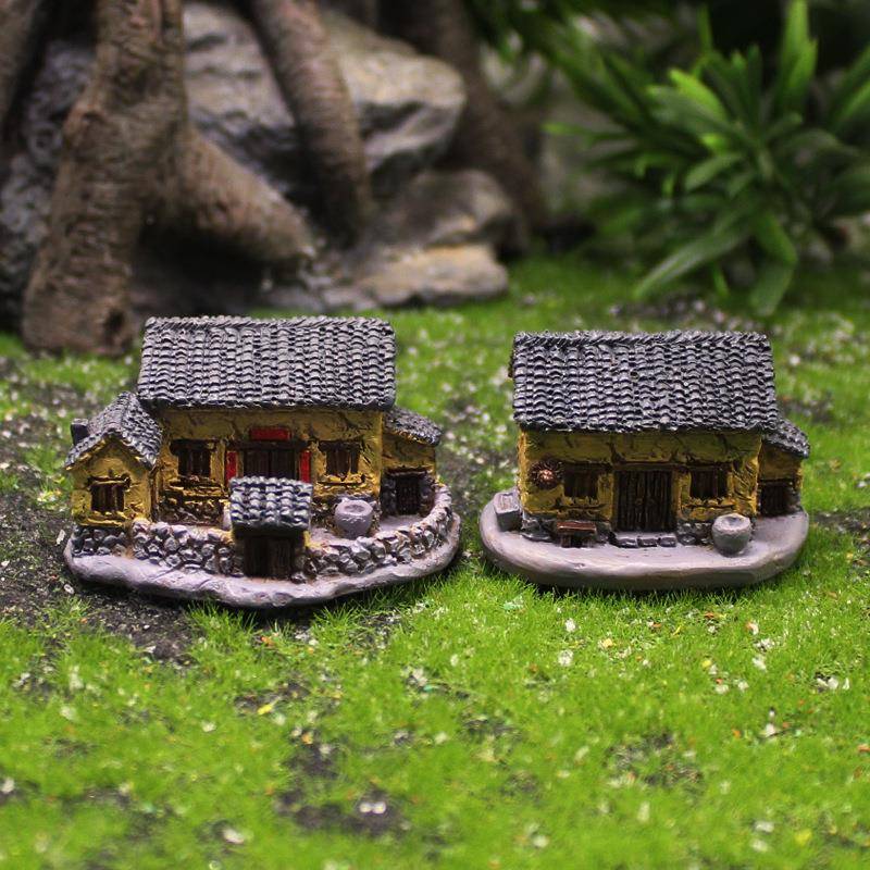彷古覆古茅草屋农家小院彷真房屋 微景观鱼缸盆景DIY装饰造景配件