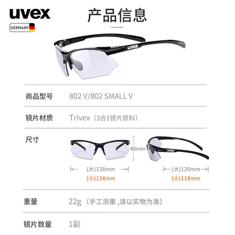 uvex sportstyle 802 V德国优维斯变色运动跑步骑行马拉松太阳镜