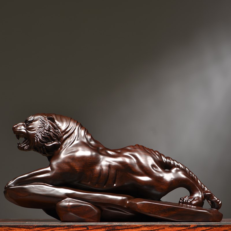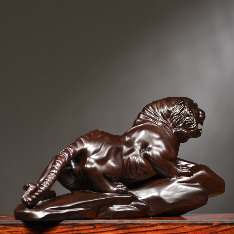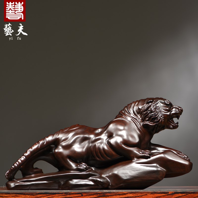 速发黑檀木雕十二生肖老虎摆件新中式虎啸河山客厅家居装饰红木工