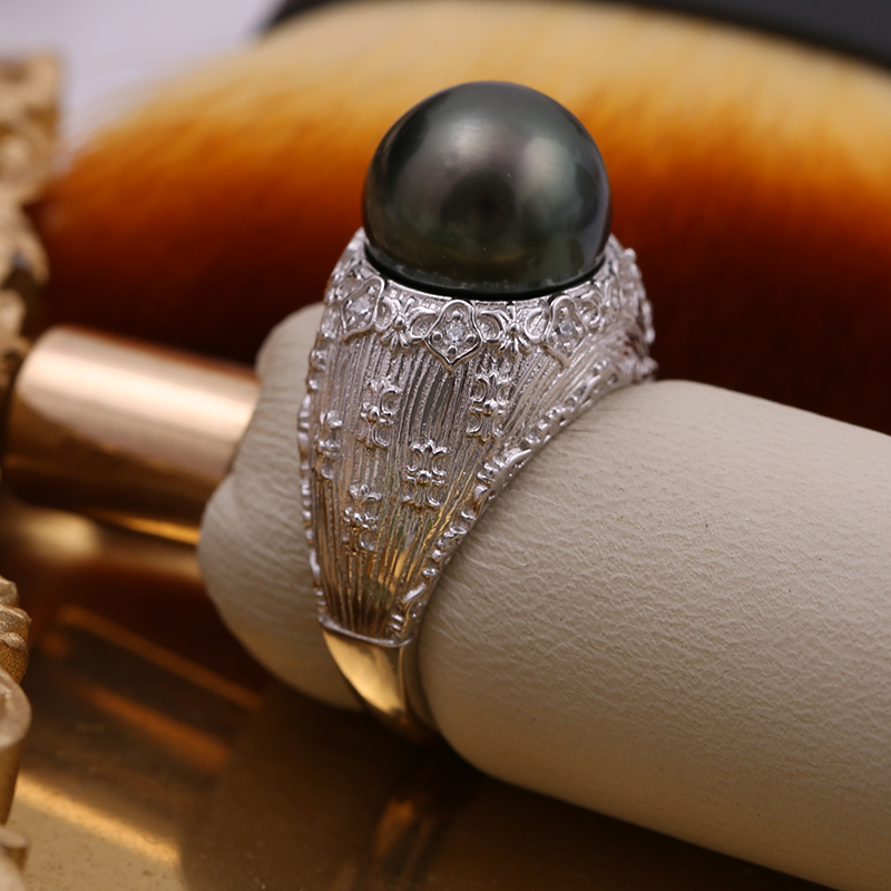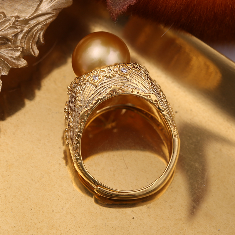 DIY珍珠配件S925纯银豪华质感古典风戒指托指环调节戒托空托配饰