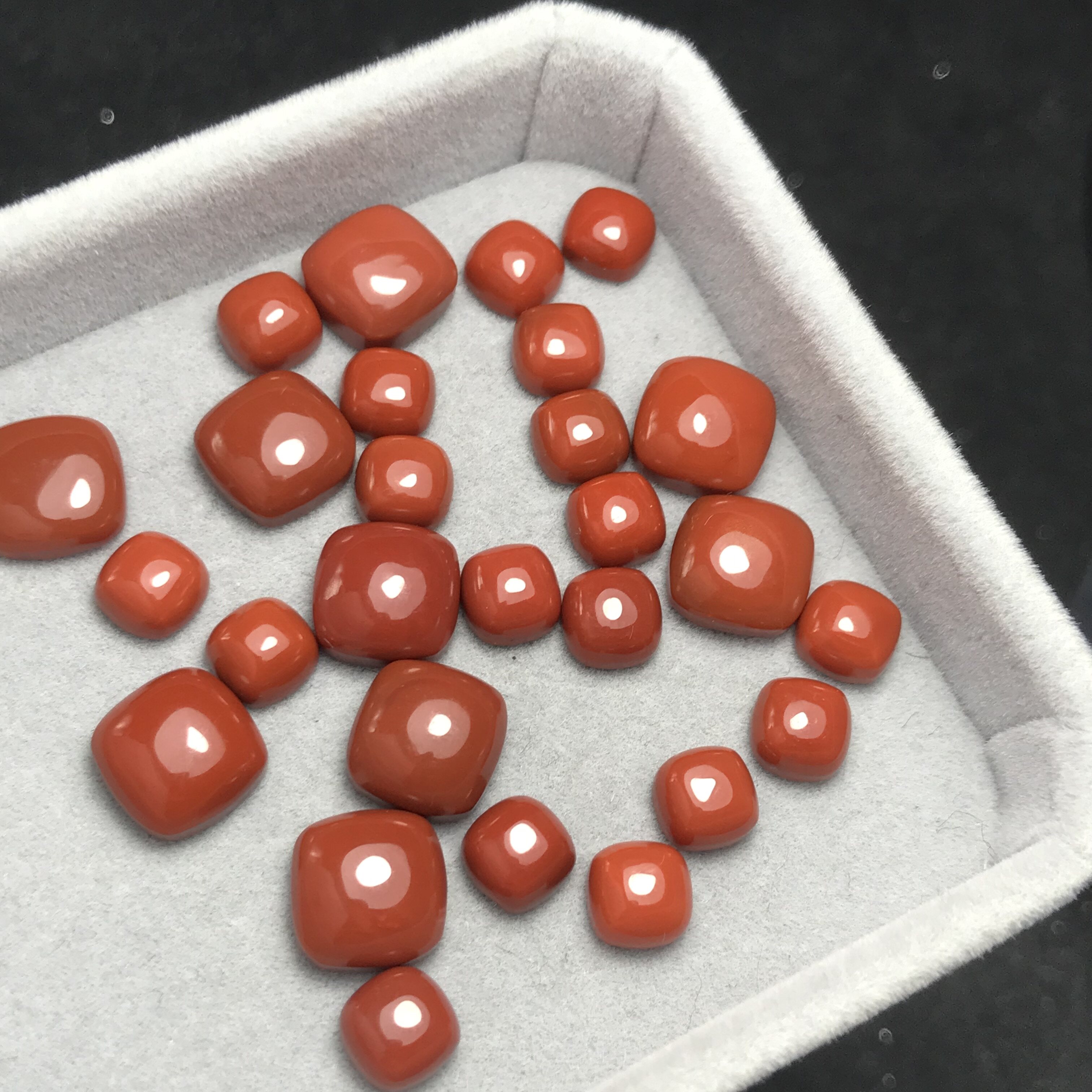 小方块!天然南红方形戒面柿子红满色满肉蒙料镶嵌戒指吊坠耳钉