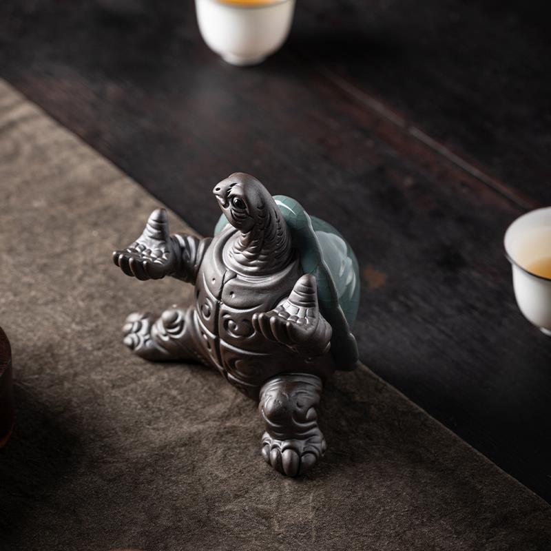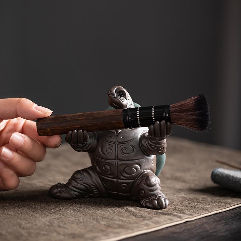 陶瓷长寿乌龟摆件创意办公桌面笔架养壶笔托茶道装饰摆设茶宠茶玩