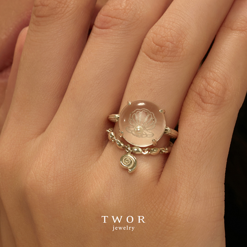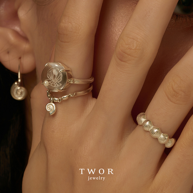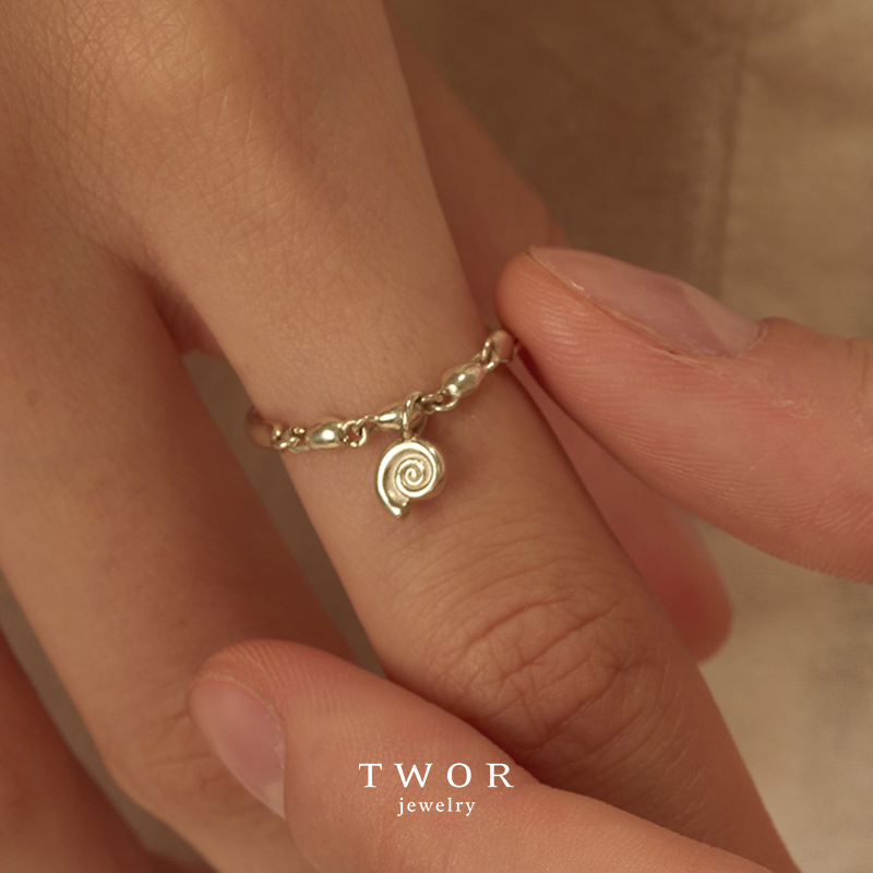 TWOR/沙滩拾贝链条小海螺s925银戒指独特女小众设计高级感指环女