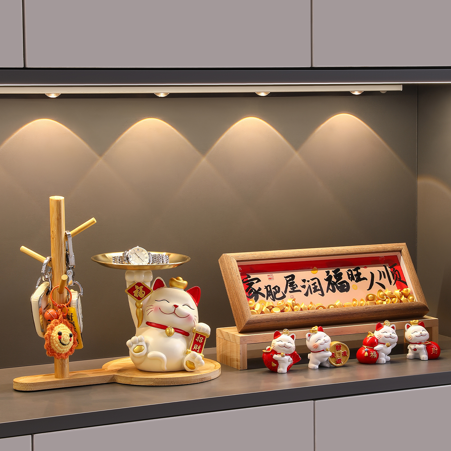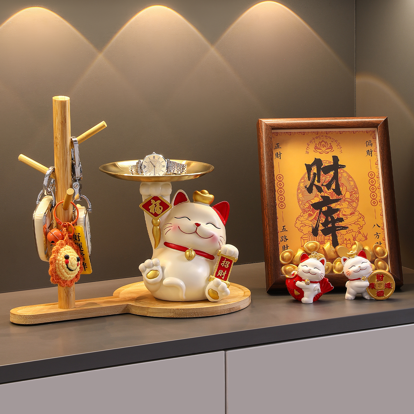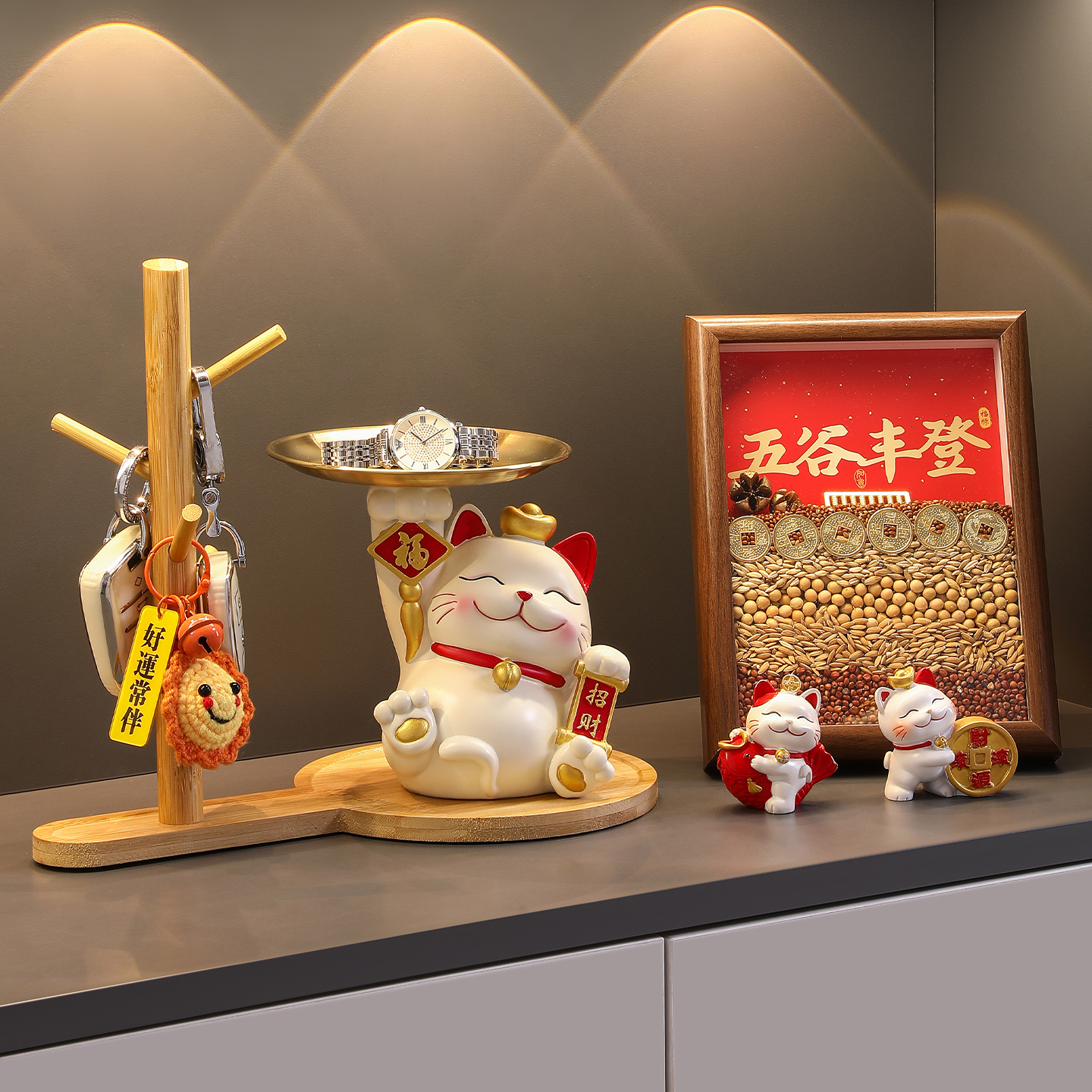入户玄关钥匙收纳摆件招财猫客厅鞋柜装饰品乔迁新居入宅搬家礼物