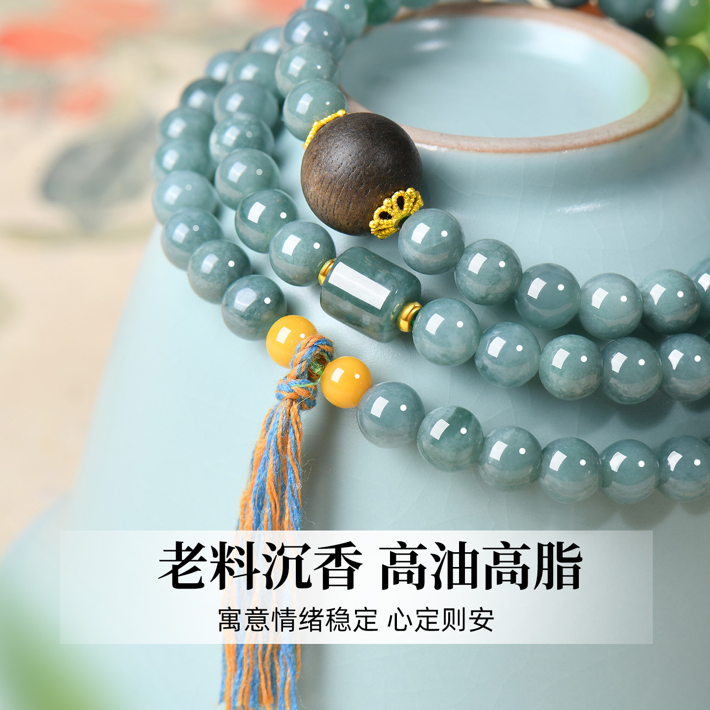 天然蓝水翡翠手串女三圈叠戴手链沉香蜜蜡情绪稳定高冰种玉石串珠