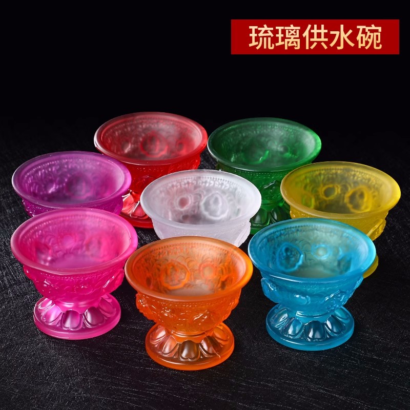 藏式民族水杯高仿琉璃七彩八吉祥供杯七宝八供杯供水碗一套七个