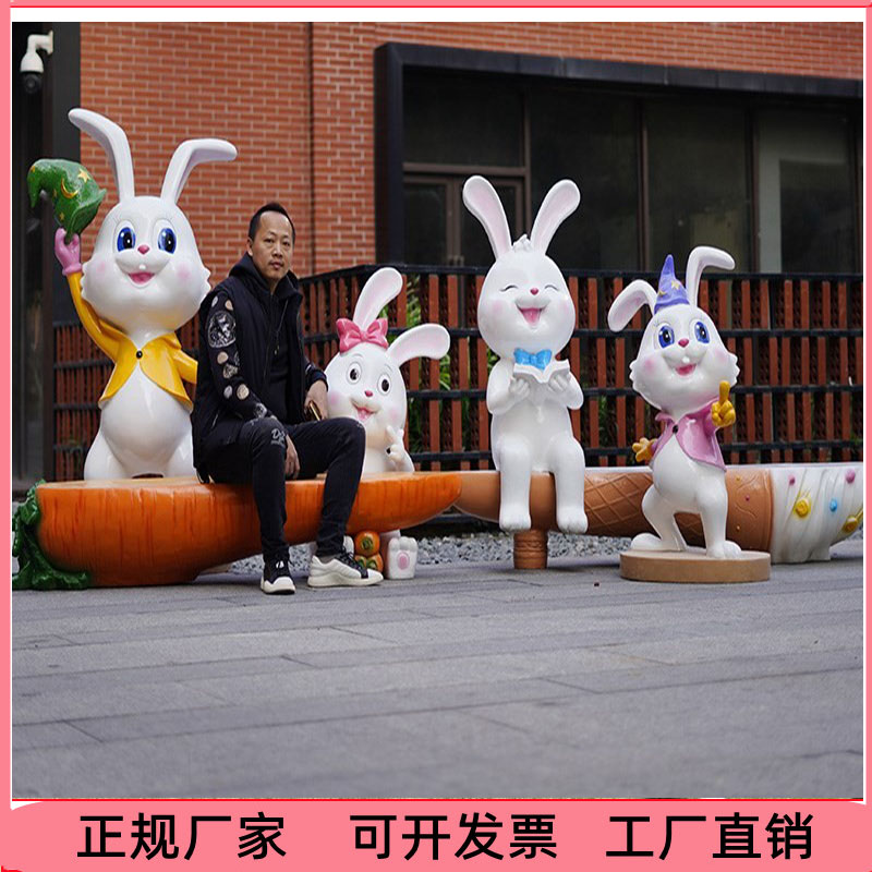 鑫晨卡通兔子玻璃钢雕塑可爱座椅商场动物模型景观幼儿园布置摆件