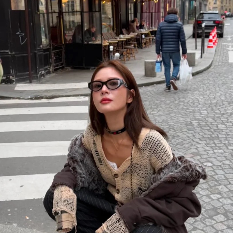 2025新款小香风椭圆形猫眼太阳镜高级感侧边钻石镜腿眼镜娜娜同款