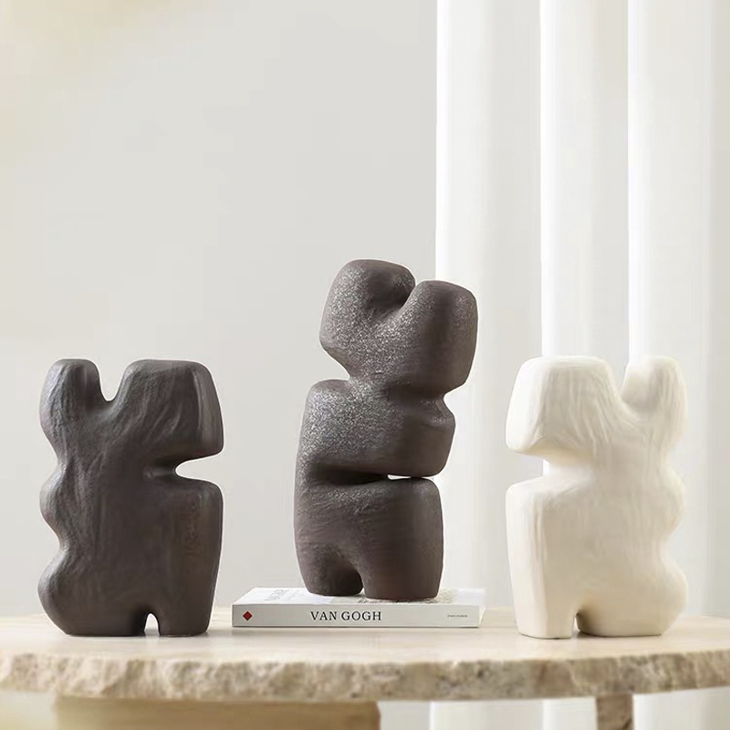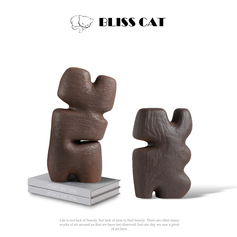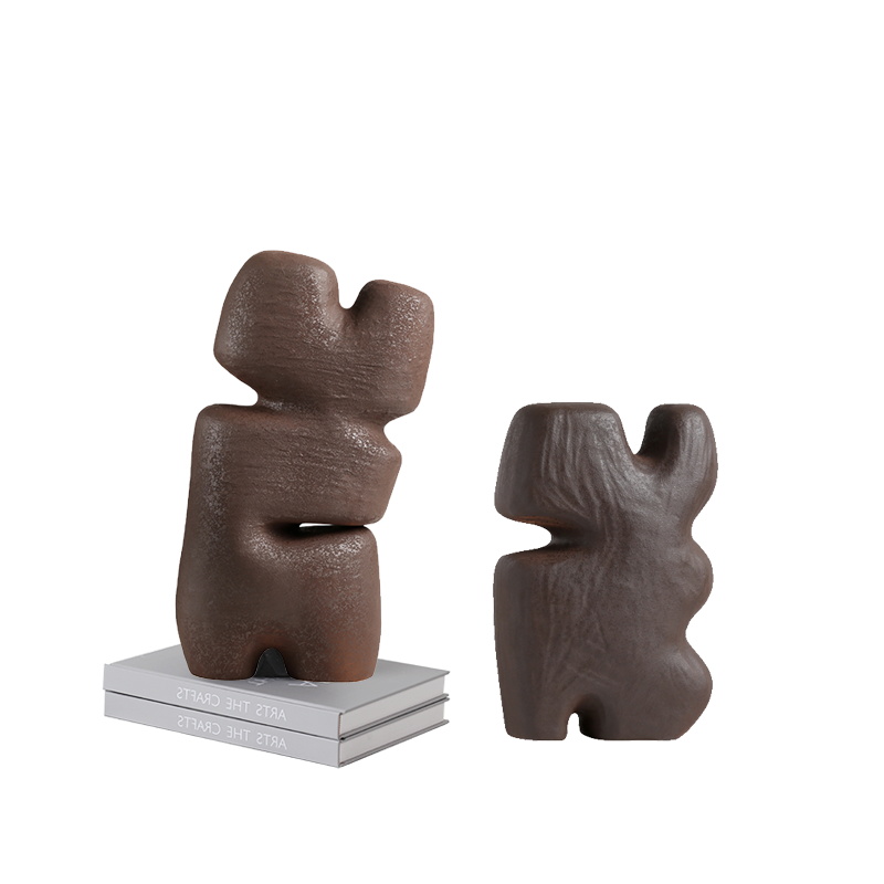 现代简约几何抽象棕色异型陶瓷摆饰样H板间儿童房装饰柜创意装饰