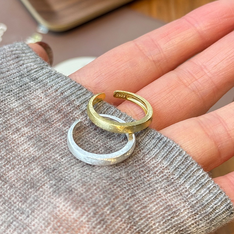 美汝仙 纯银磨砂拉丝戒指女简约小众设计港风个性百搭开口指环轻