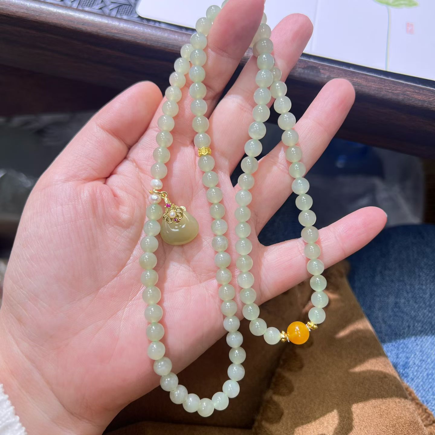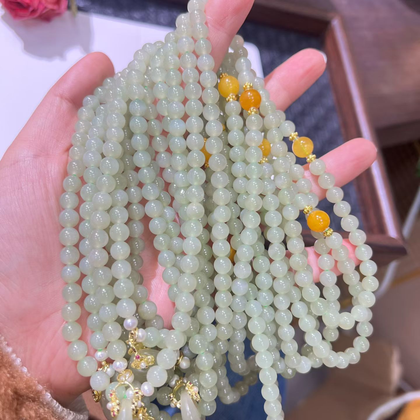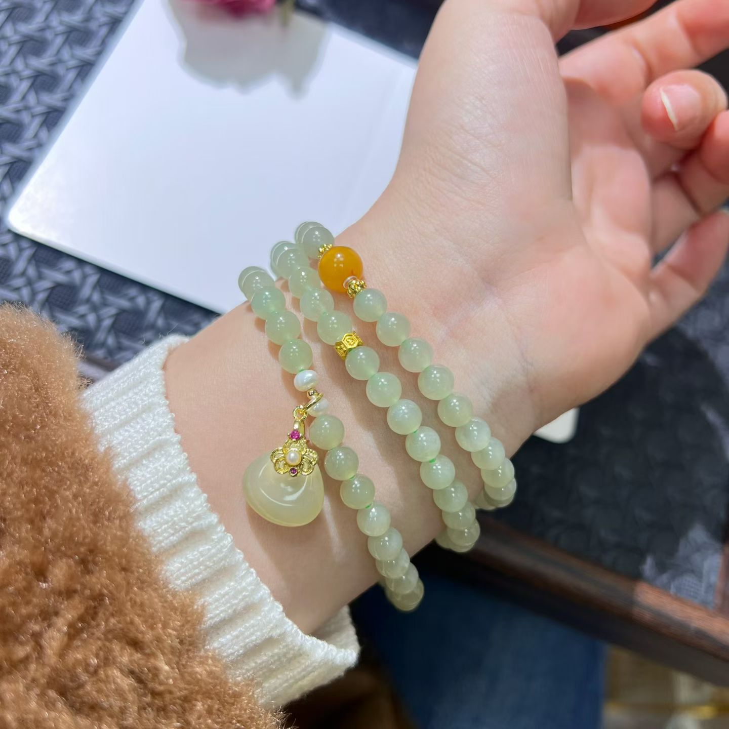 天然和田玉手串女款蜜蜡珍珠和田玉多圈玉石手链小众设计饰品礼物