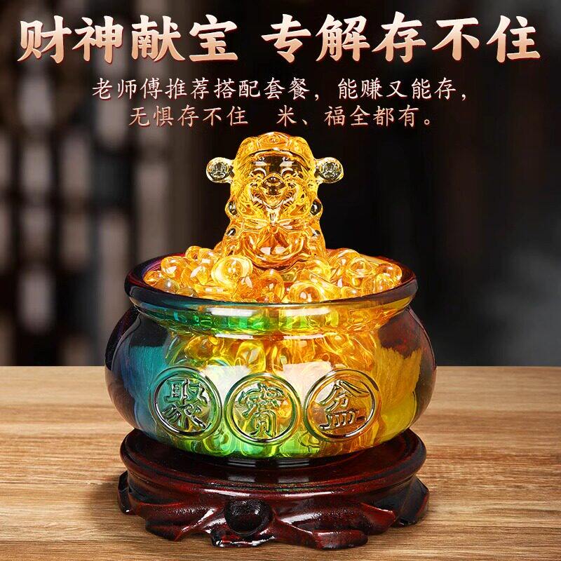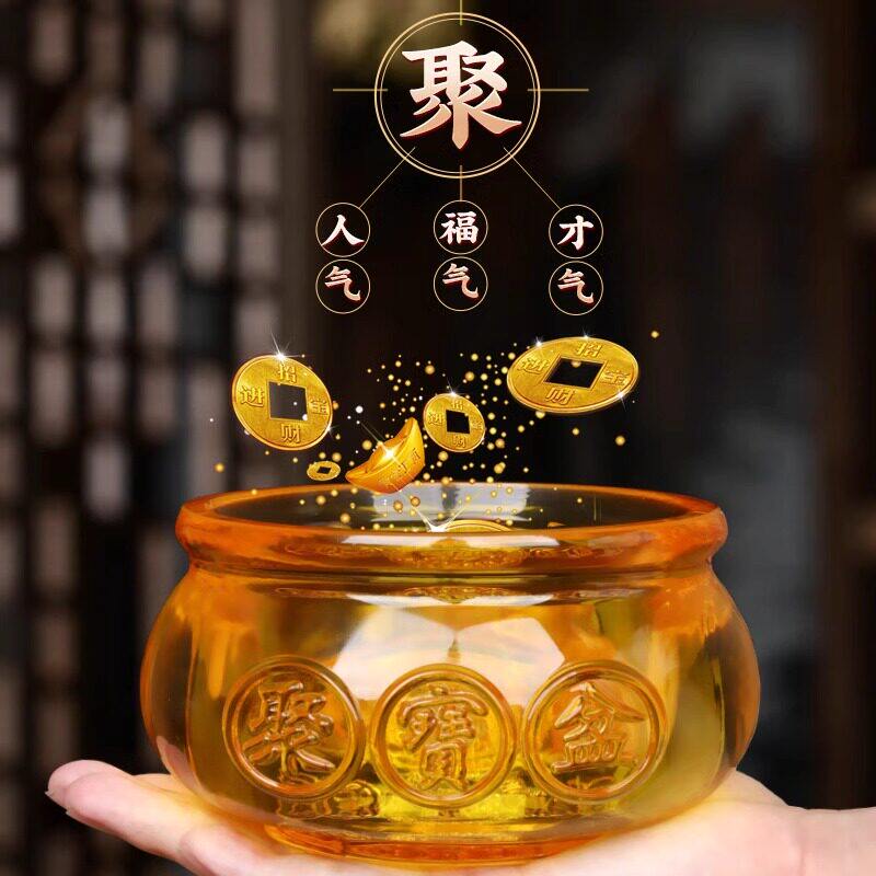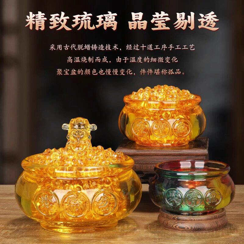 黄水晶聚宝盆摆件黄色琉璃元宝招财聚财家居桌面摆设开业乔迁礼品