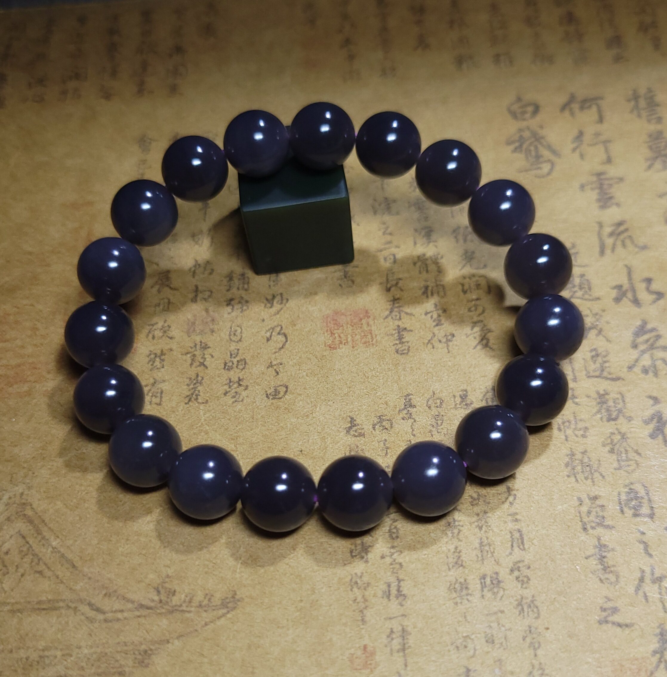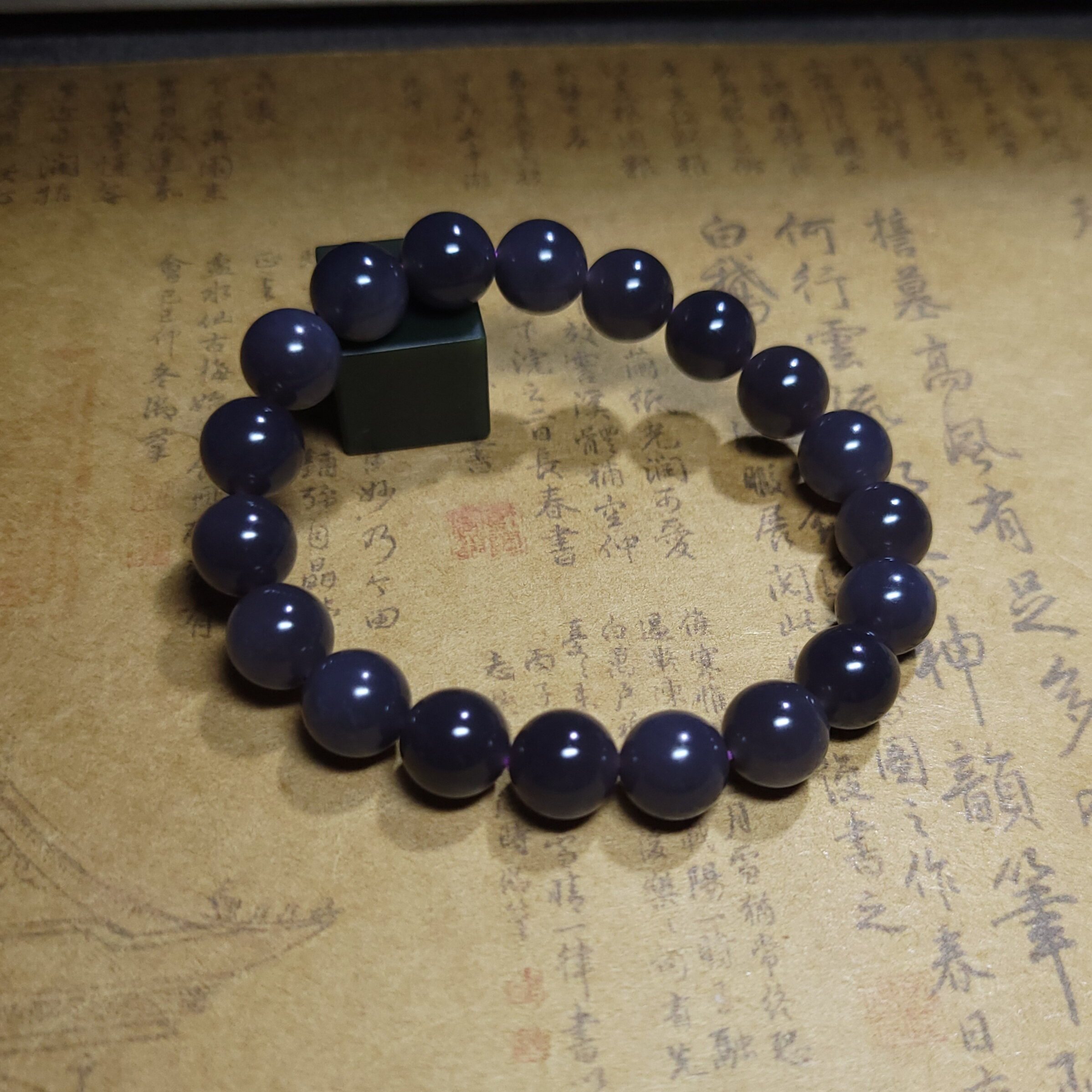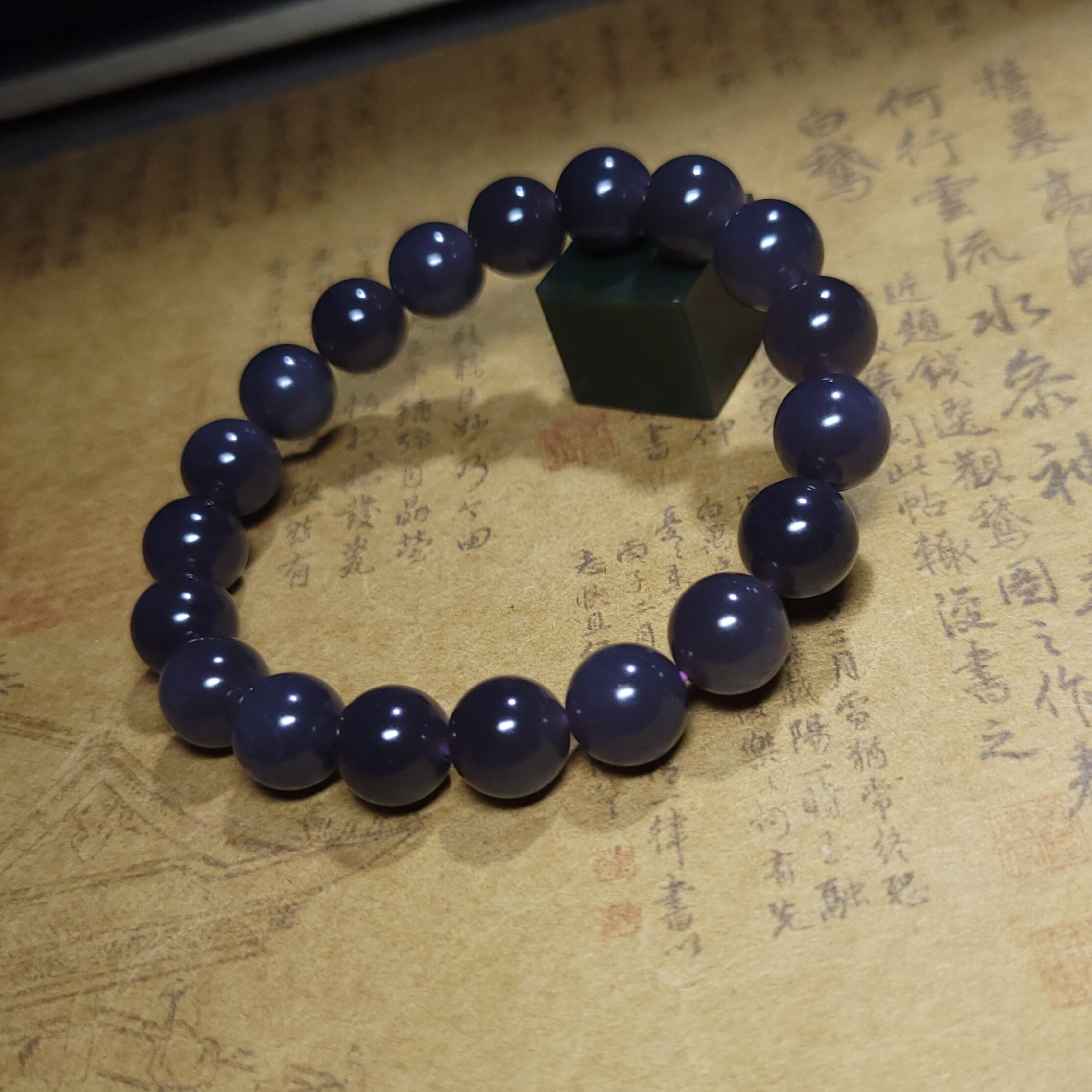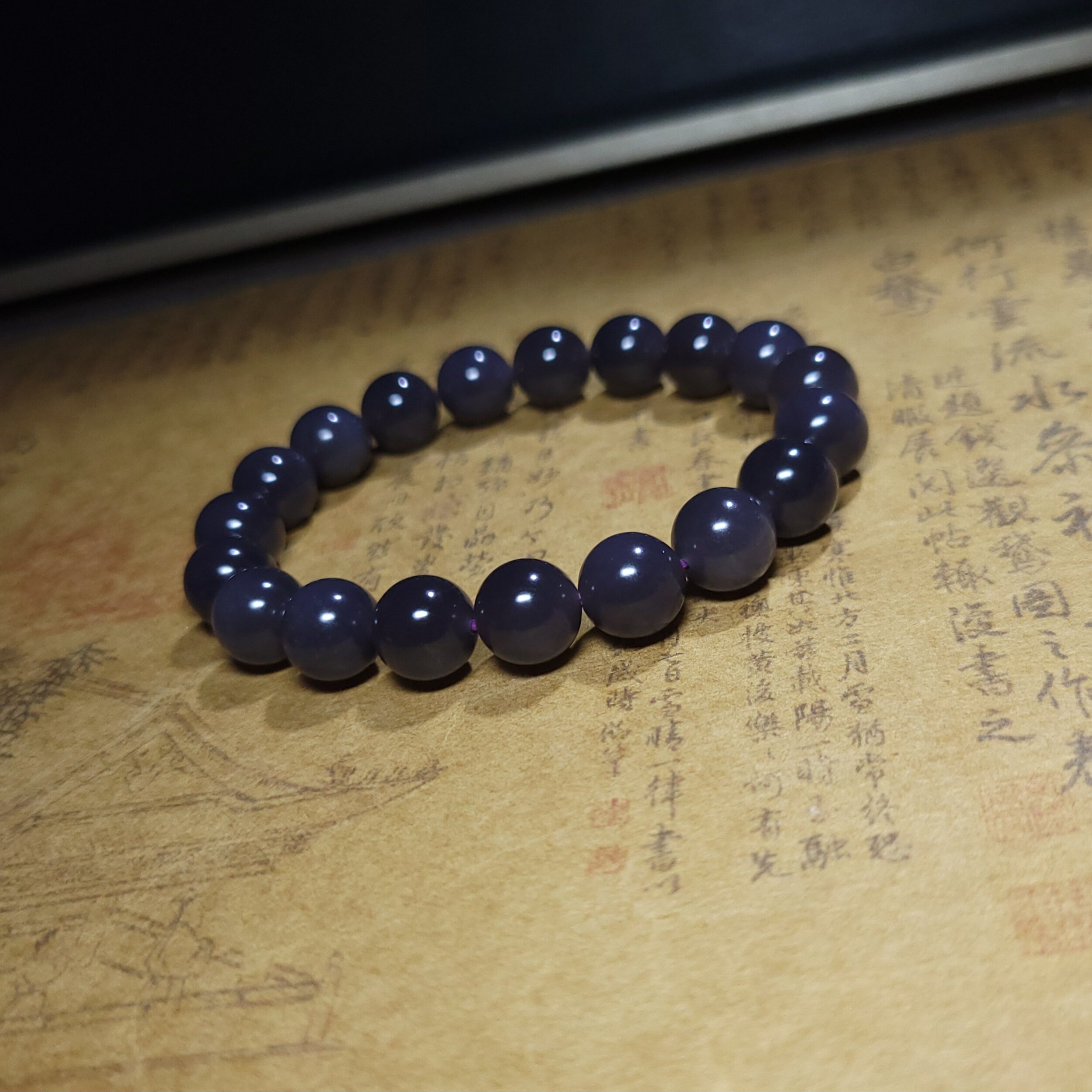 Z032505 新疆的猫29.3克,R10油亮细润色浓艳烟紫色和田玉手串
