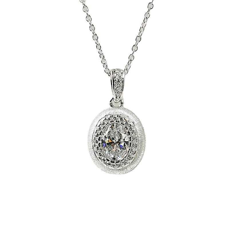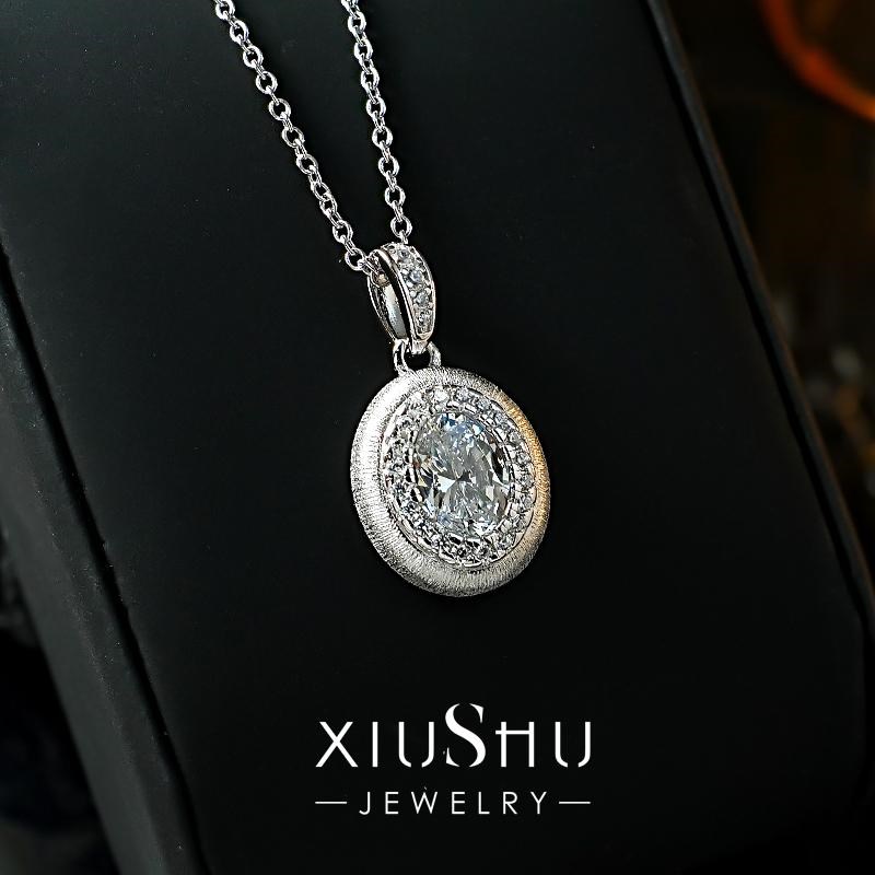 中古风金属拉丝女款925银吊坠锁骨链2克拉镶嵌简约大气纯银轻奢女