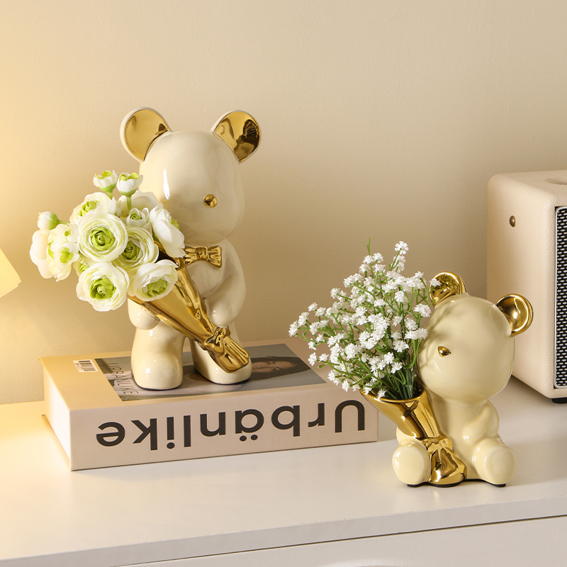 速发创意捧花熊客厅摆件家居玄关电视柜桌面装饰品新房乔迁小礼物