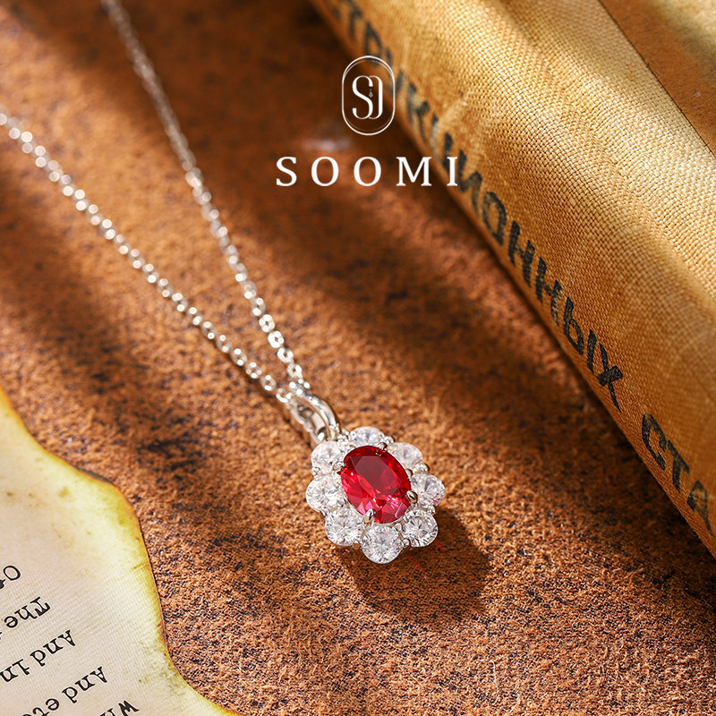 【SOOMI罗比妮亚】925银实验室1.85克拉鸽血红宝石项链戴妃款吊坠