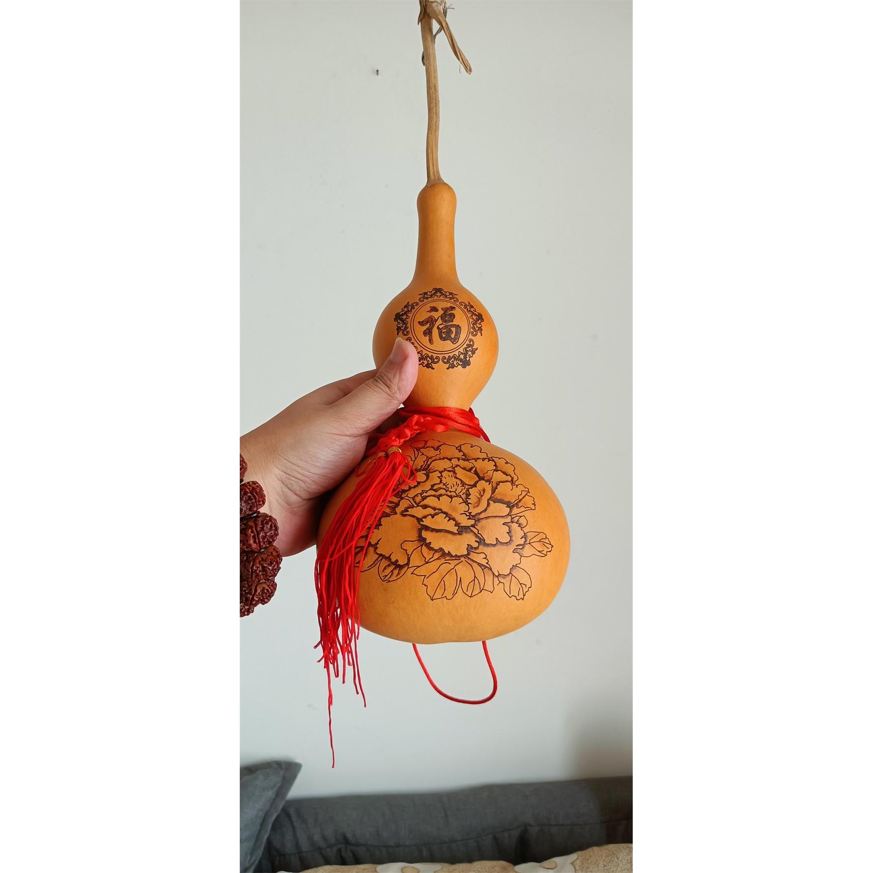 家居镇宅招财天然葫芦大摆件花开富贵牡丹烙画饰品书房客厅大门对